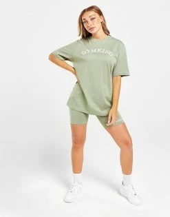 Update your off-duty essentials with this women’s Script T-Shirt from Gym King. Landing in a Light Khaki colourway, this tee is made with a super-soft cotton-poly blend for easy wear. It fits oversized for a laidback feel, and features a ribbed crew neckline and short, baggy sleeves. Finshed up with a Gym King wordmark embroidered across the chest. Machine washable. | Our model is 5’6.5″ and wears a size 8.
