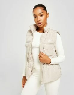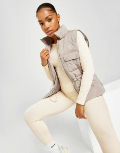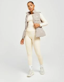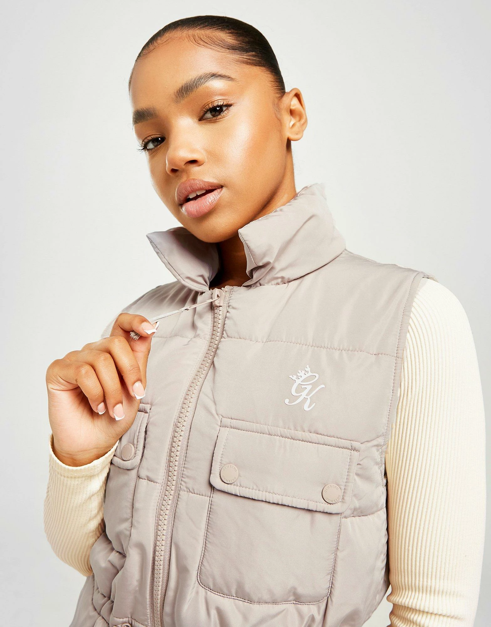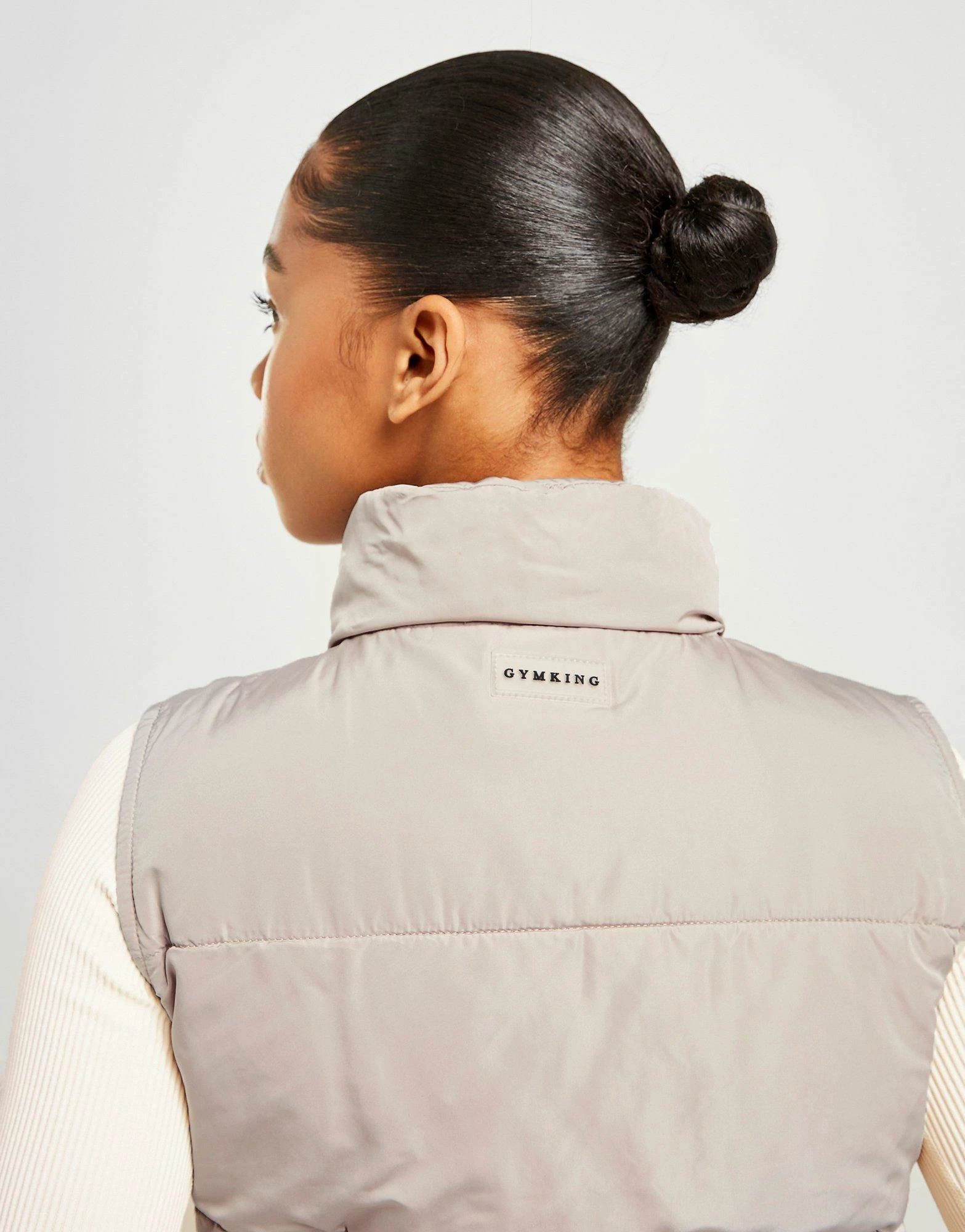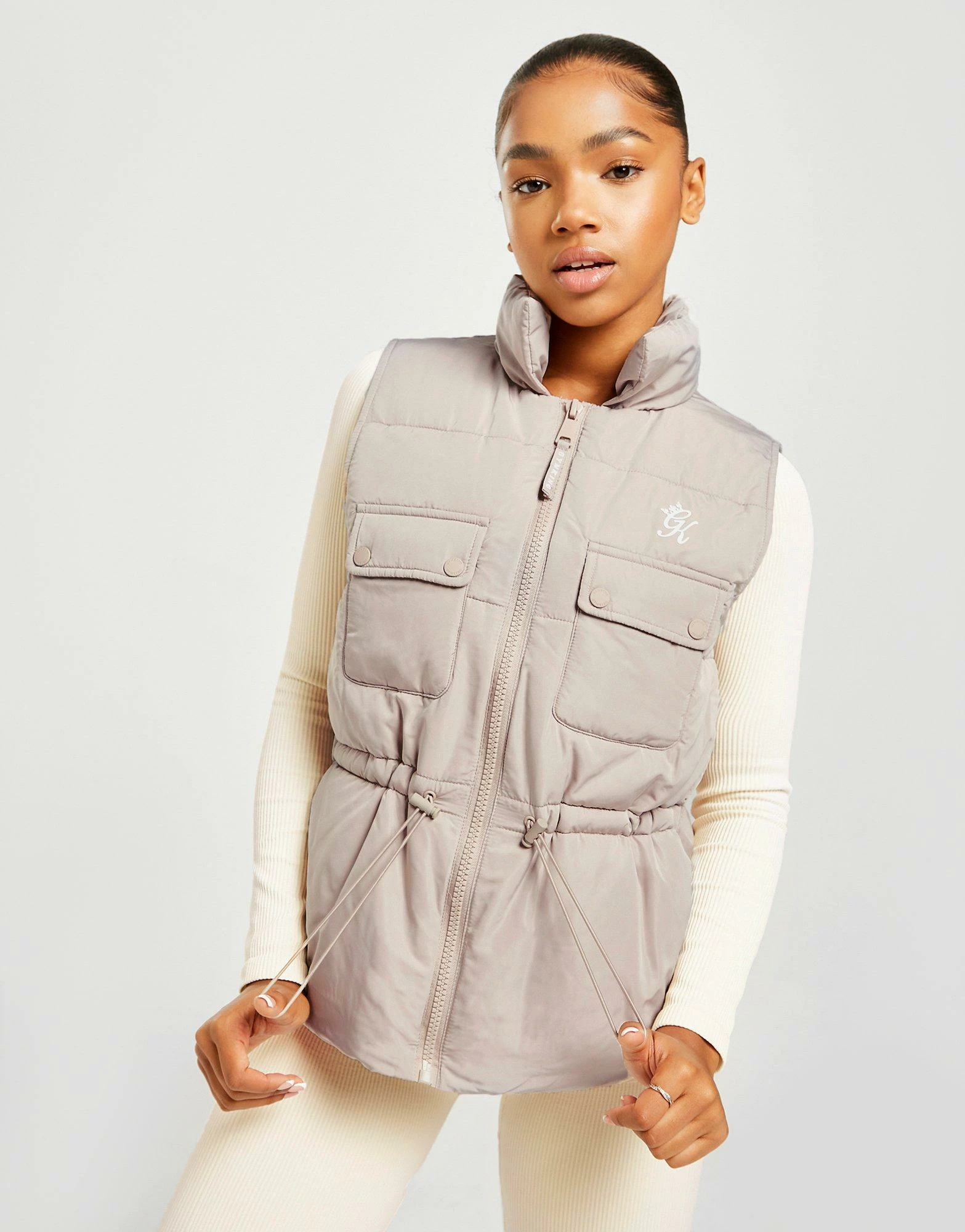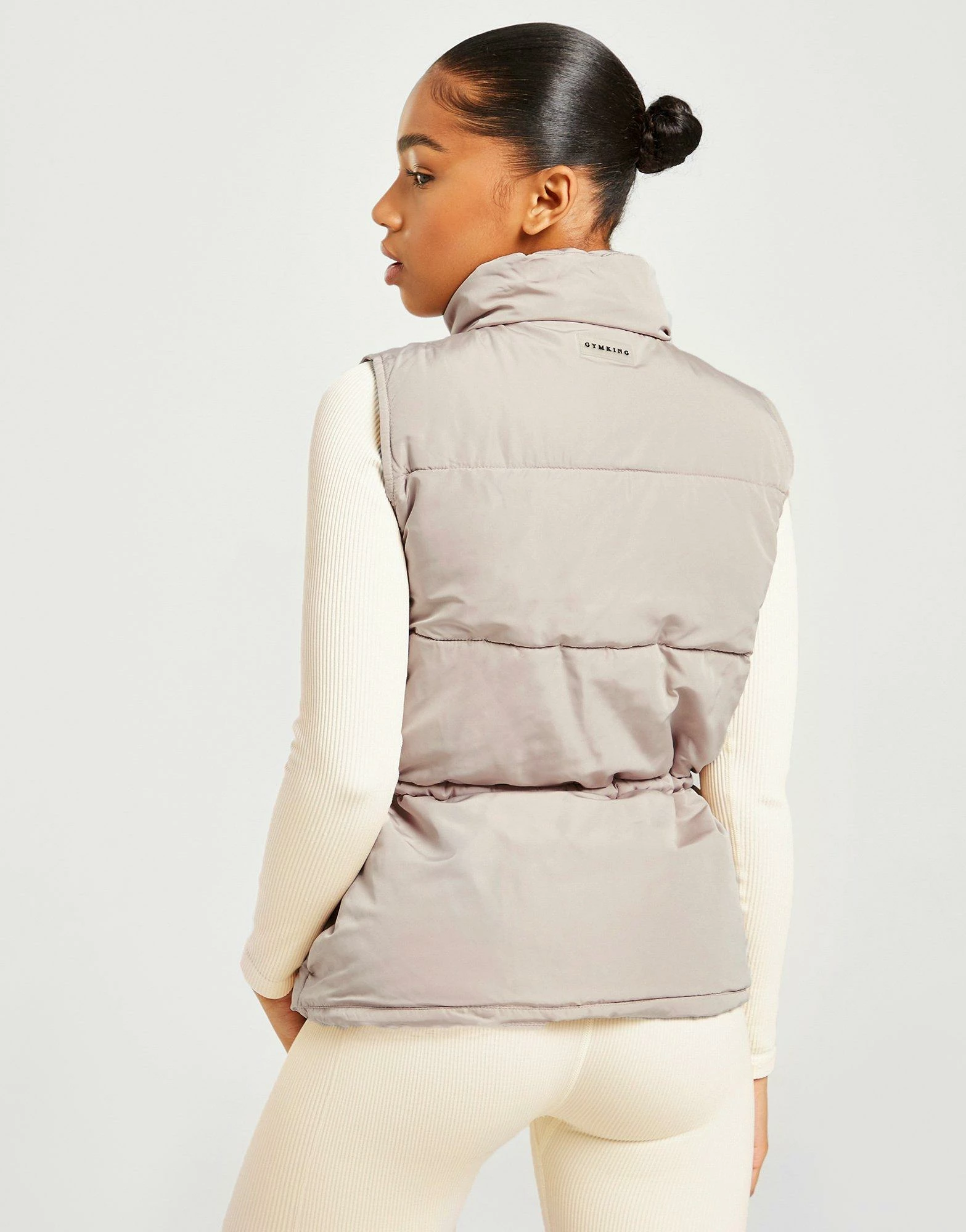 Layer up and keep the cold at bay with this women’s Utility Gilet from Gym King. In a Beige colourway, this standard fit gilet is cut from light, durable polyester for smooth comfort. It features a full-zip fastening for custom coverage, with an adjustable bunge cord for a personalised fit. It has side and chest pockets for your essentials and is finished up with Gym King branding to the chest. Machine washable. | Our model is 5’6″ and wears a size 8.