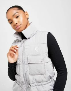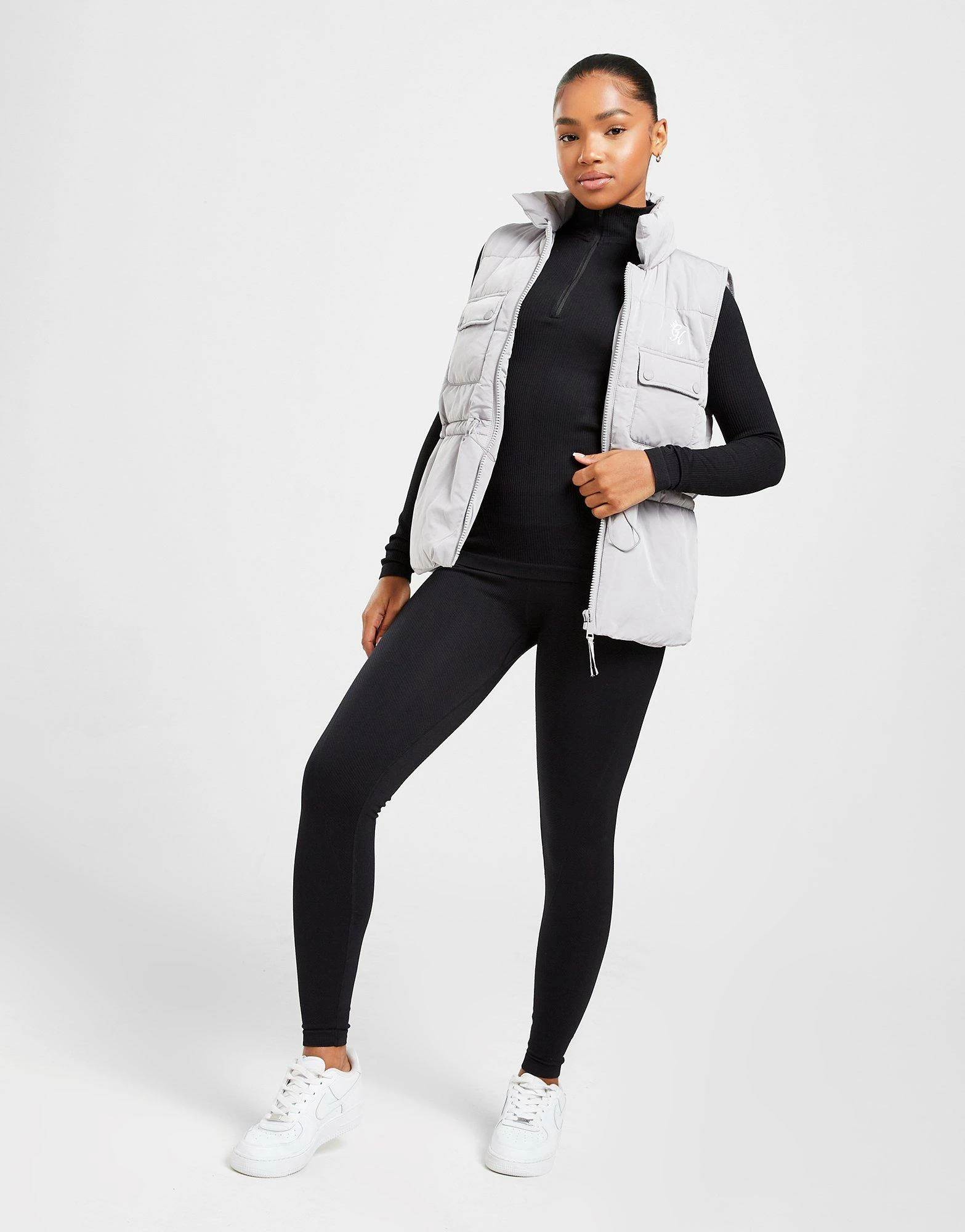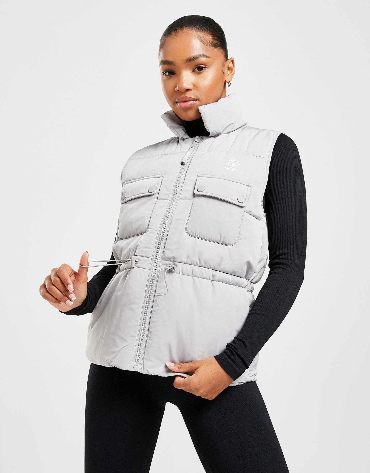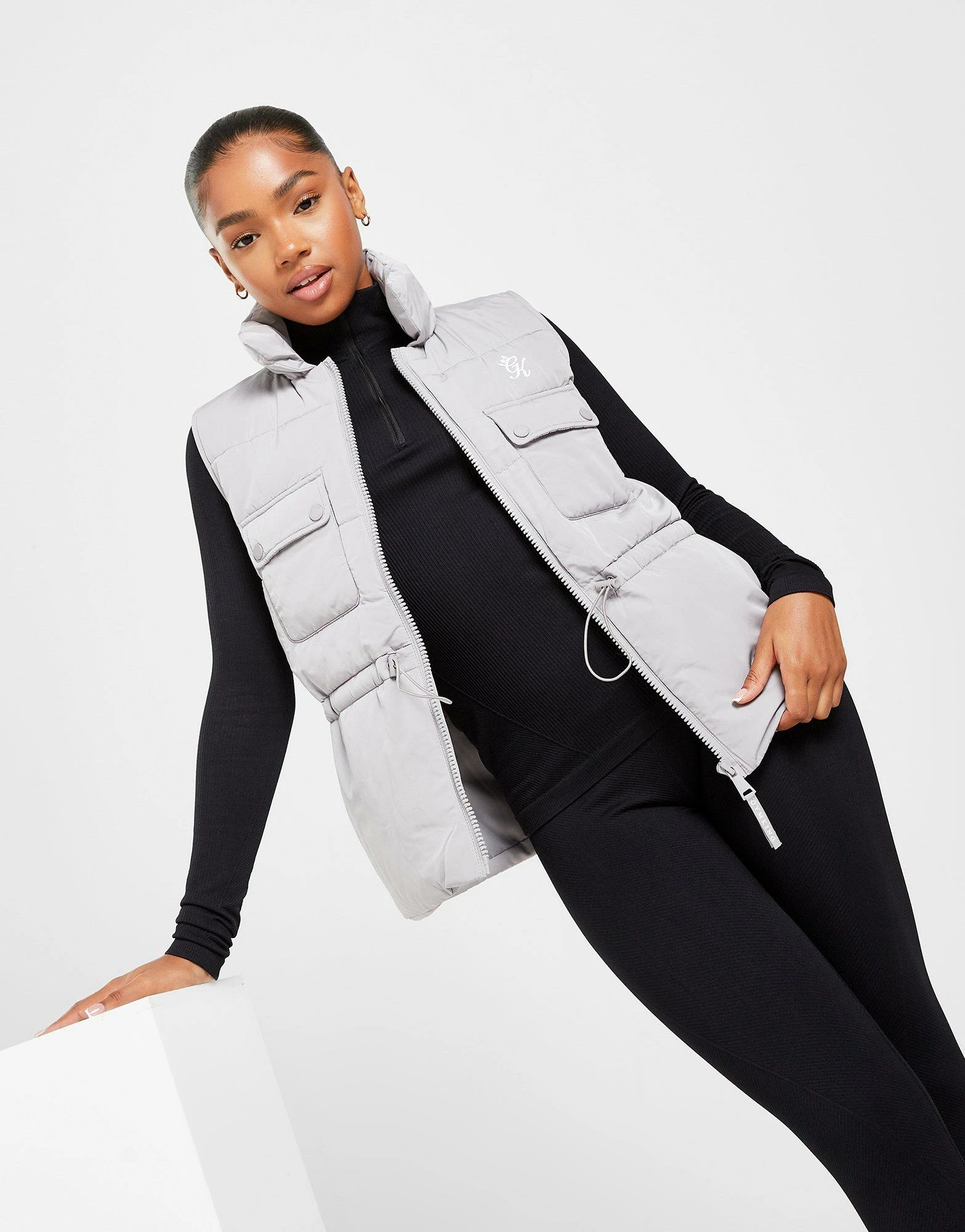 Stop the cold in style with this women’s Utility Gilet from Gym King. This standard-fit gilet comes in a Grey colourway and is made using a smooth and lightweight poly fabric for all-day wear. It features full zip fastening with an adjustable bungee cord so you can get the perfect fit whilst buttoned pockets offer secure storage. Finished up with Gym King branding to the chest. Machine washable. | Our model is 5’7″ and wears a size 8.