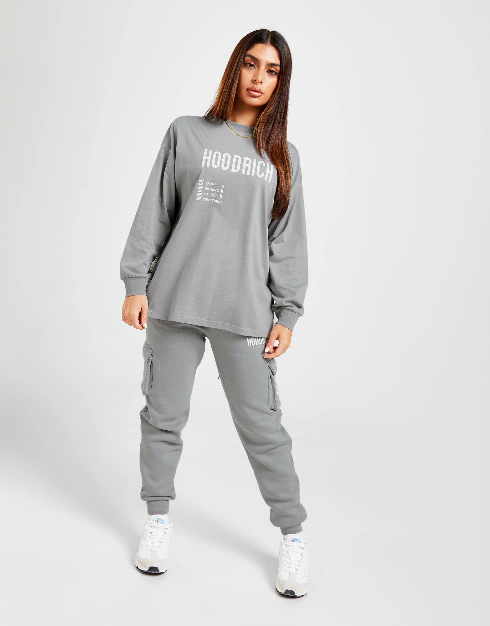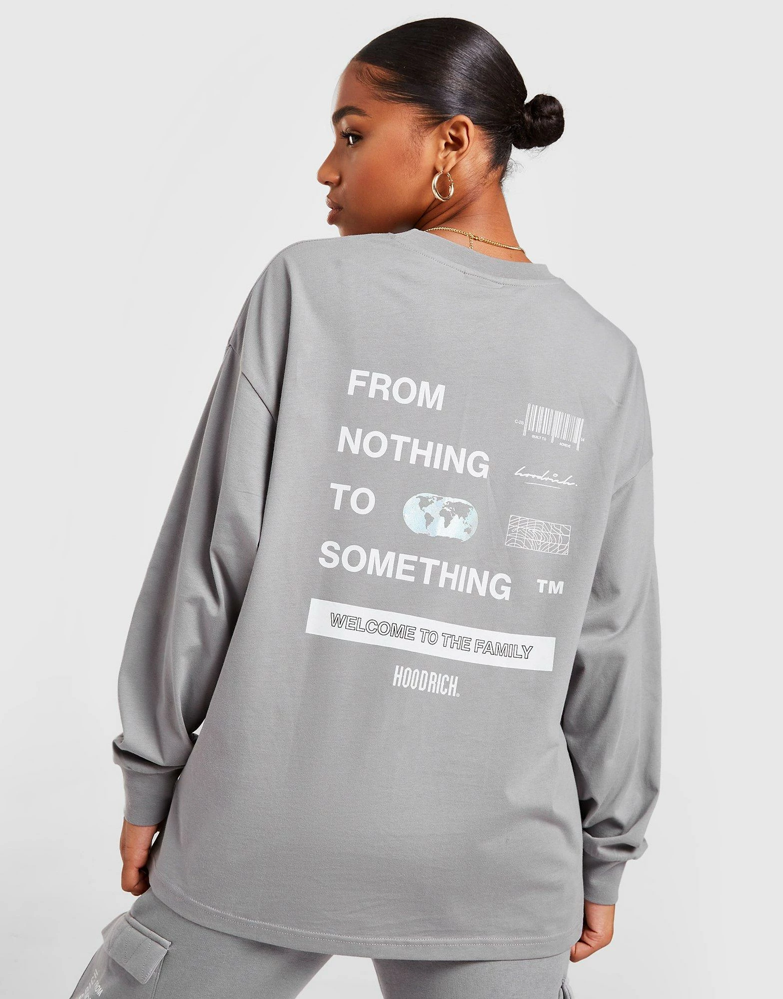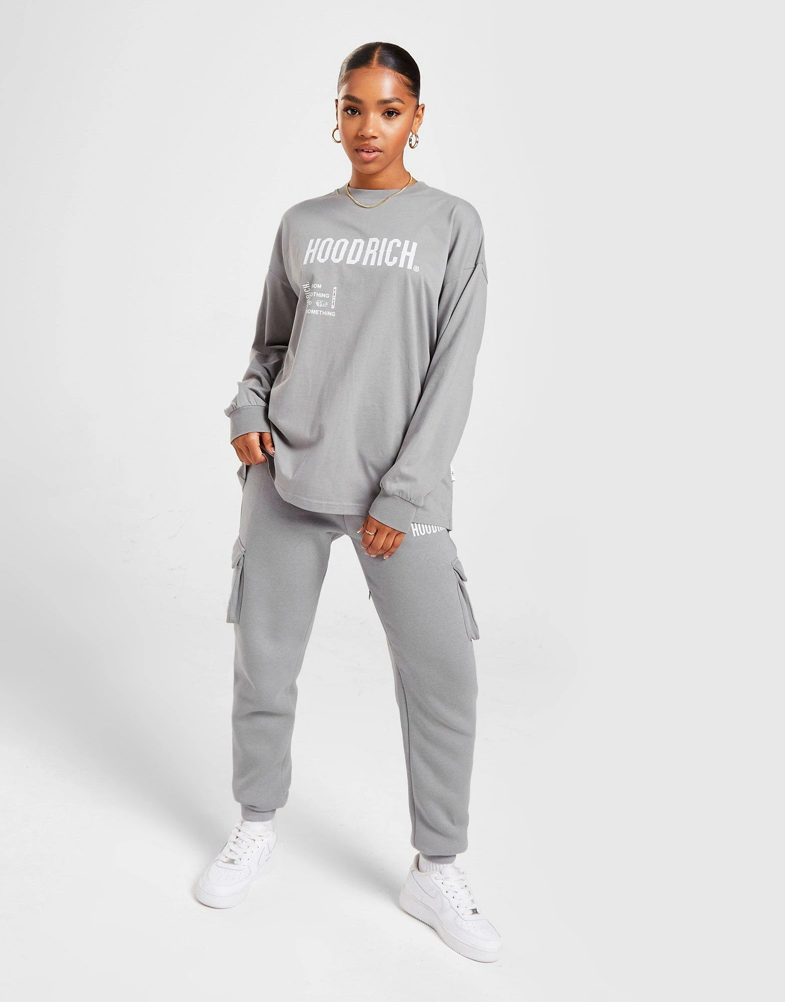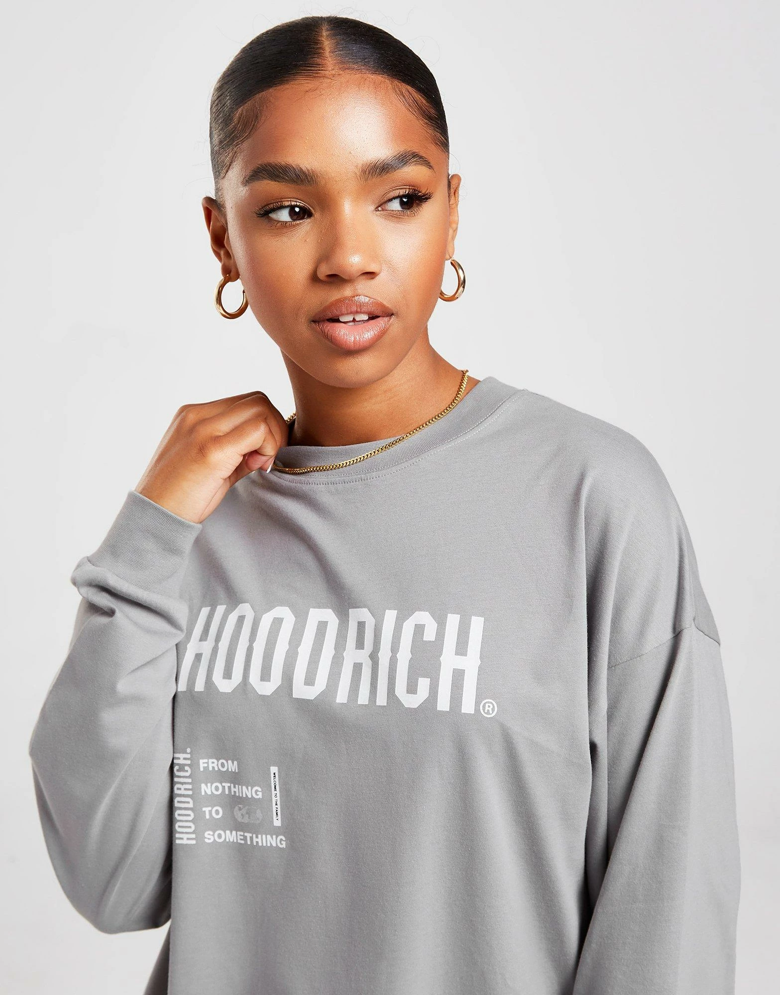 Add some street-ready heat to your basic cuts with this women’s Frenzy Long Sleeve T-Shirt from Hoodrich. Comin’ in a exclusive Slate colourway, this loose-fit tee is cut from soft, durable cotton for lasting comfort. It features a classic crew crew neckline and long, drop-shoulder sleeves with a baggy fit, while ribbed cuffs secure ’em in place. Finished up with bold Hoodrich branding across the chest, and their signature ‘From Nothing To Something’ slogan stamped at the back. Machine washable. | Our model is 5’7″ and wears a size small.