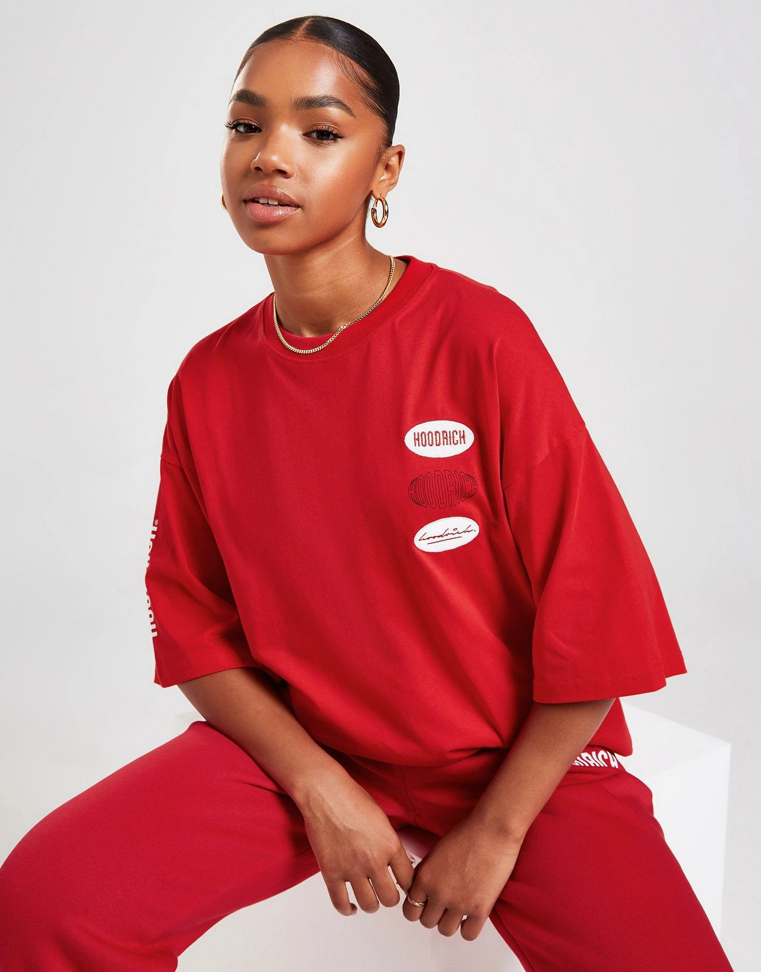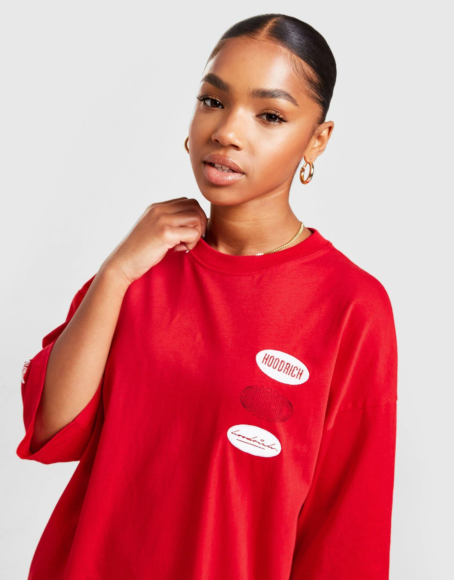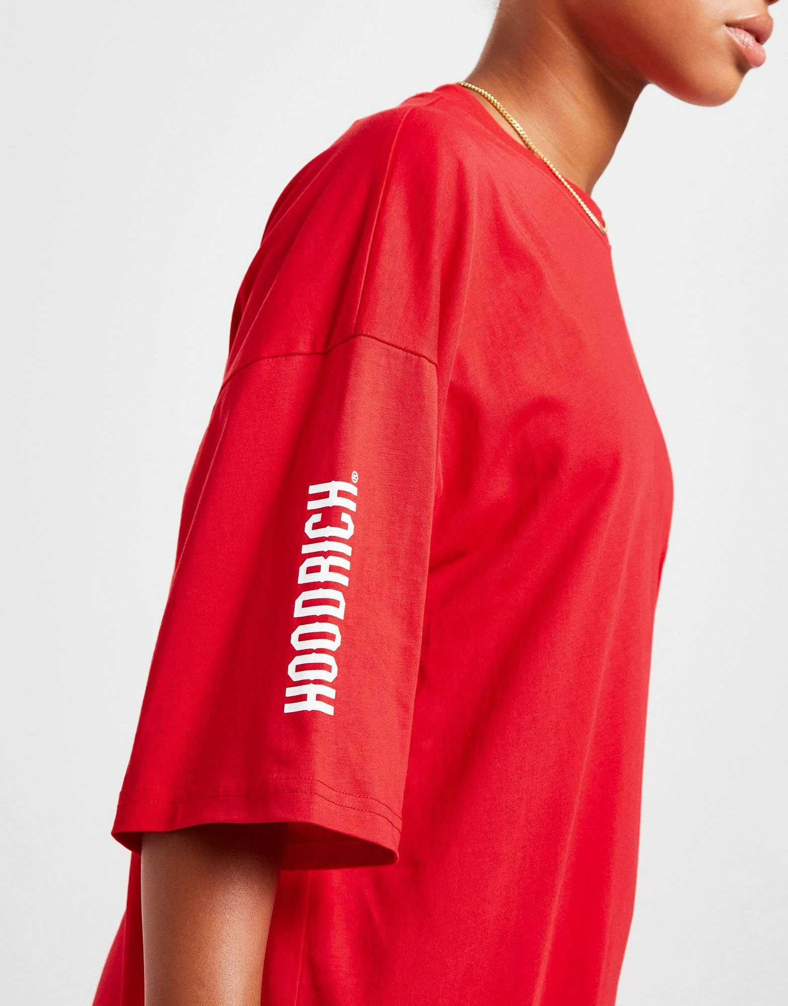 Go bold in exclusive style with this women’s Swift T-Shirt from Hoodrich. Built for off-duty plans, this baggy tee has dropped shoulders, a ribbed crew neckline and roomy sleeves for cool comfort. Landing in a red colourway, it’s made from smooth cotton fabric. Finished up with contrasting Hoodrich branding throughout. Machine washable. | Our model is 5’7″ and wears a size small.