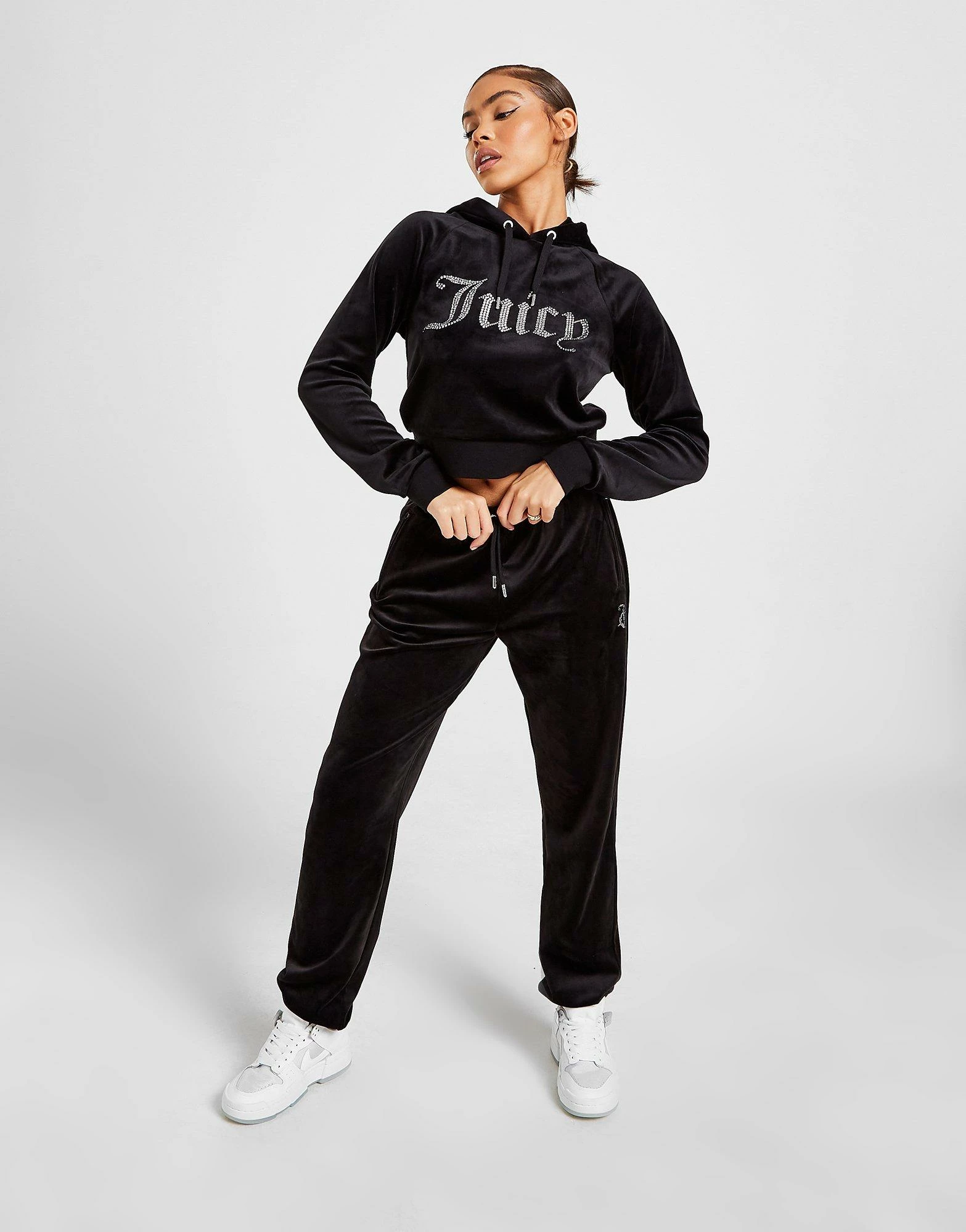 Eksklusivt. Få et lækkert look med denne Diamante Logo Velour hoodie fra Juicy Couture