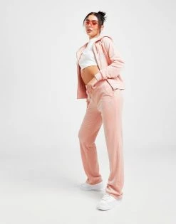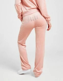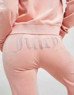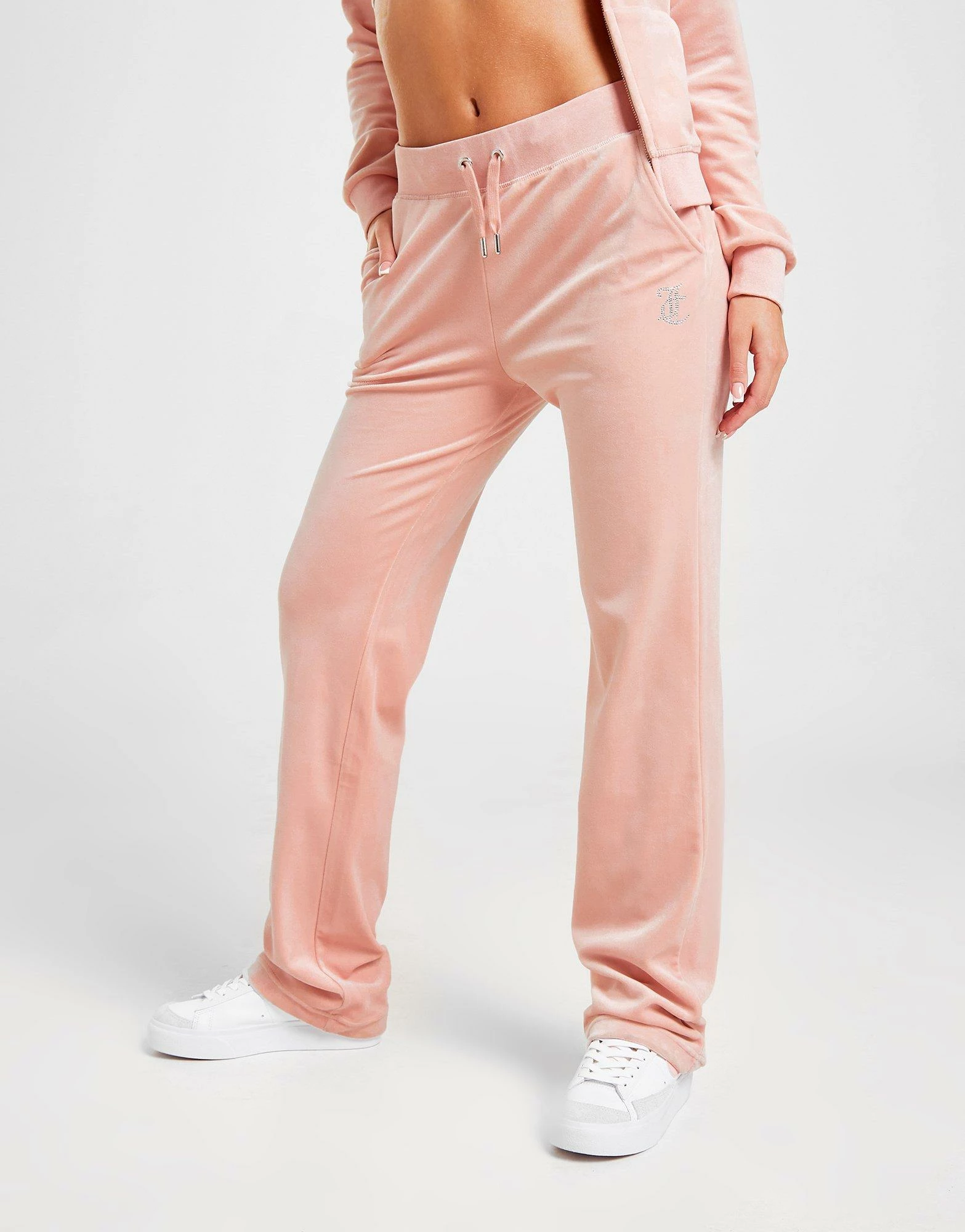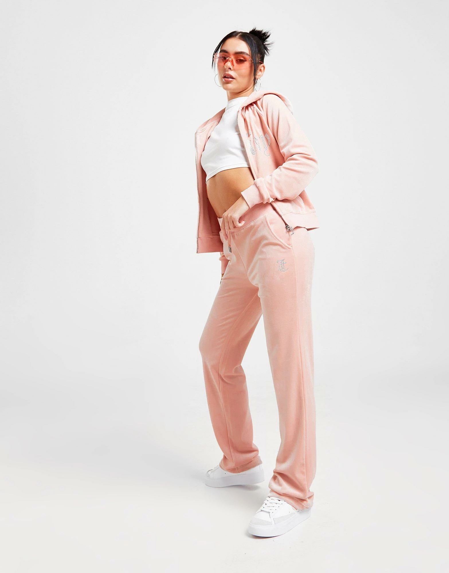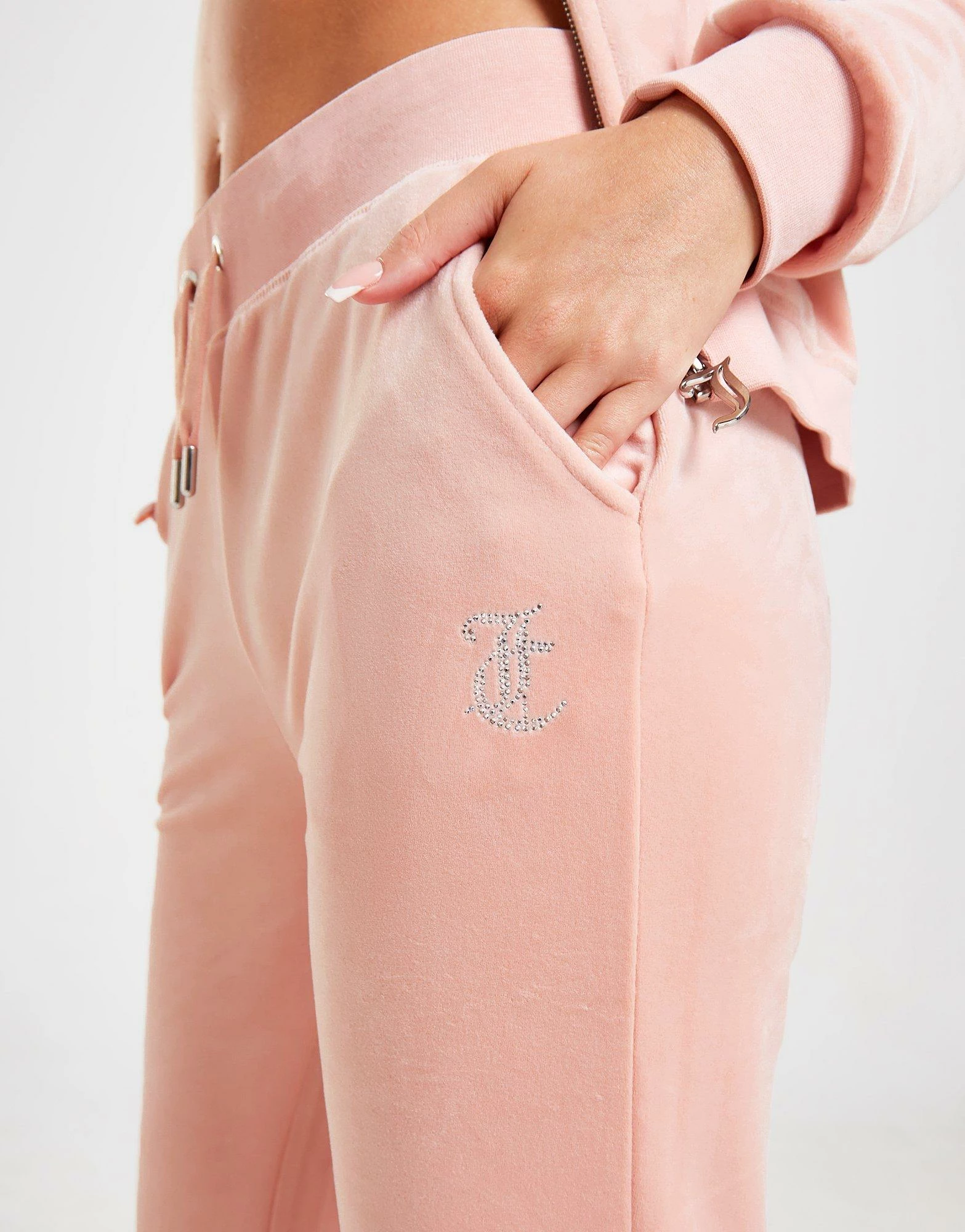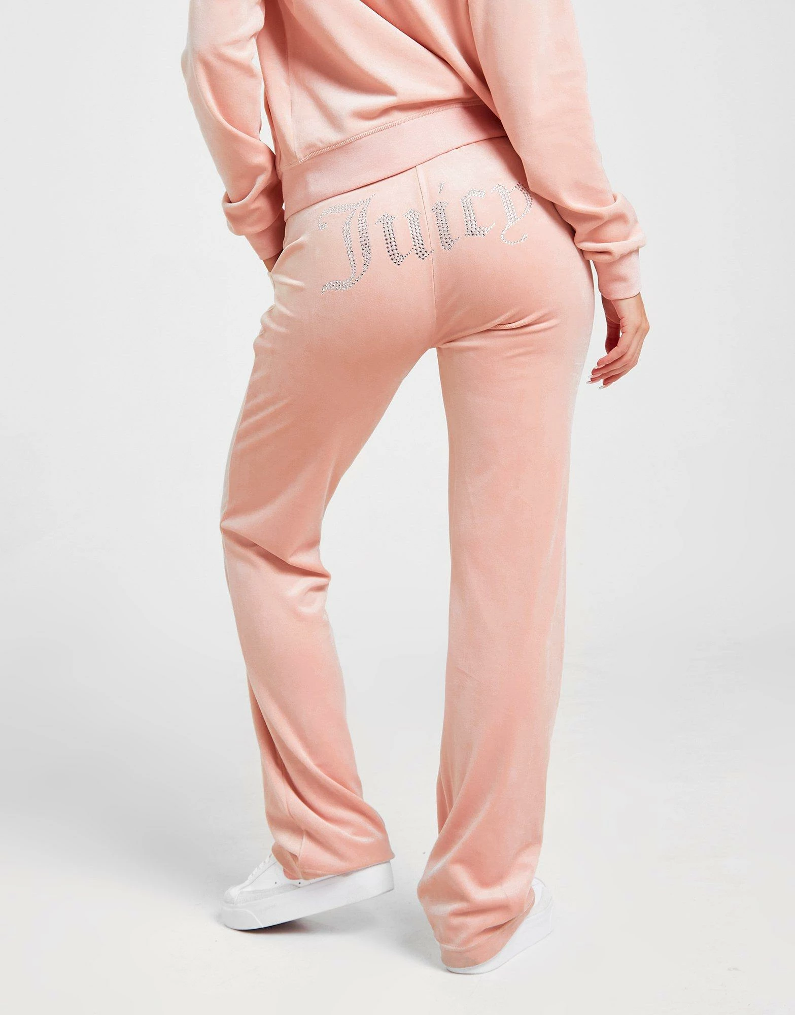 Rep a retro vibe on laidback days with these women’s Diamante Velour Track Pants from Juicy Couture. In a Pale Pink colourway, these standard fit track pants are cut from light, fleecey velour fabric for super-soft comfort. They feature an elasticated waistband with an adjustable drawcord for a relaxed fit, with side pockets for your everyday essentials. Finished up with diamante Juicy branding to the leg and reverse. Machine washable | Our model is 5’6″ and wears a size small.