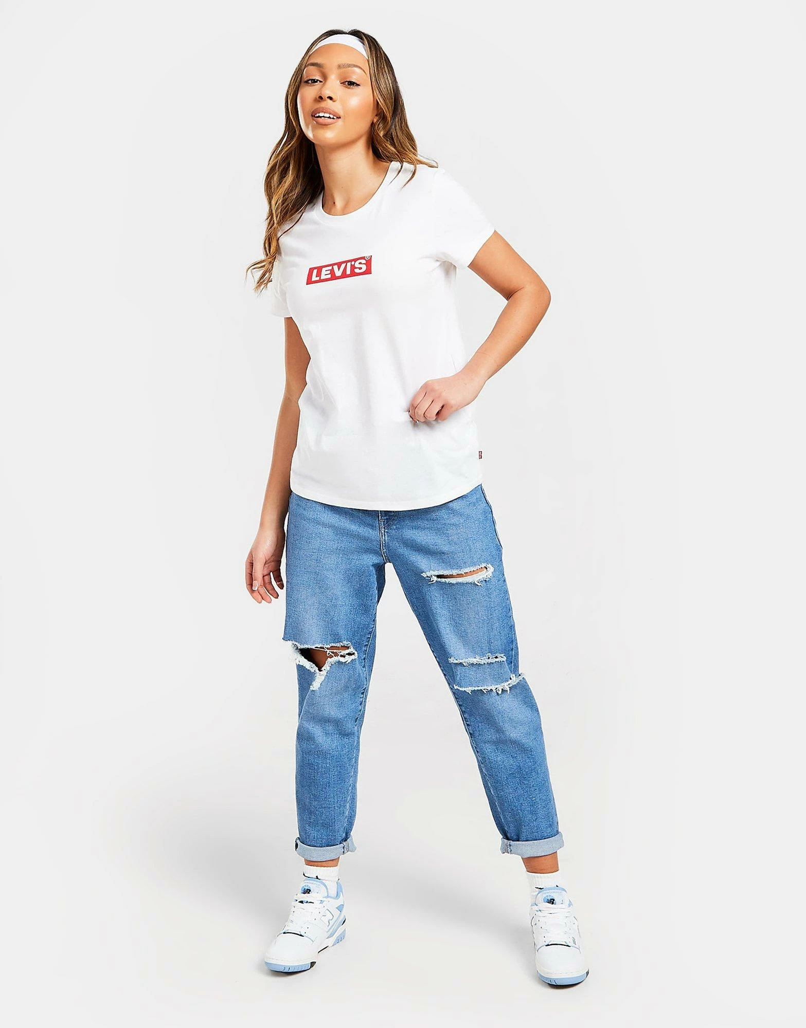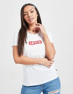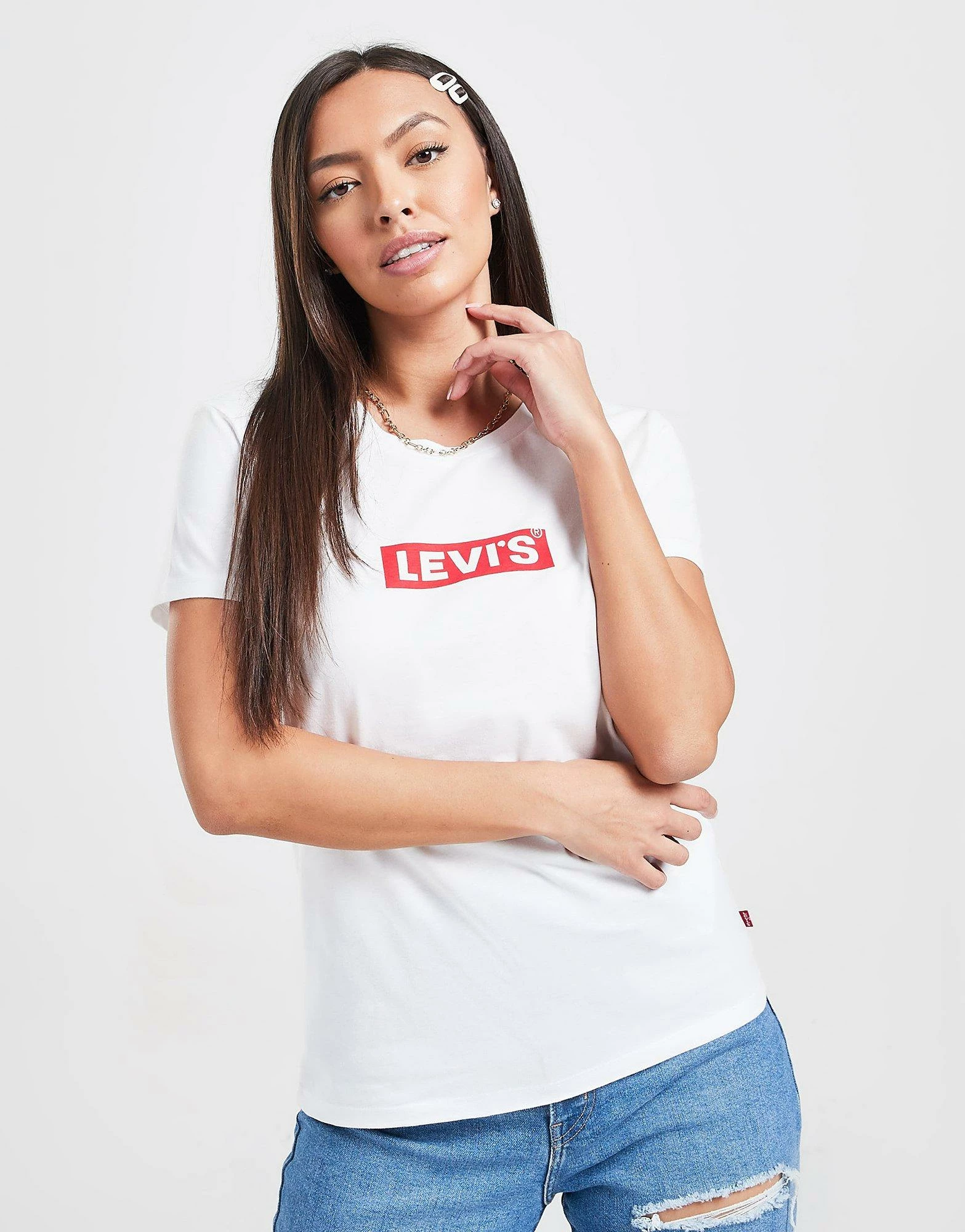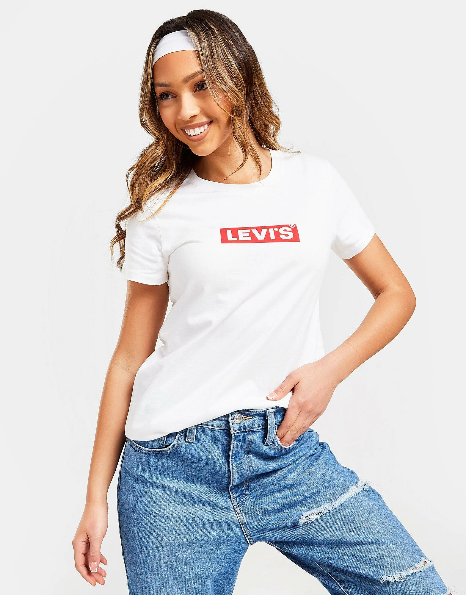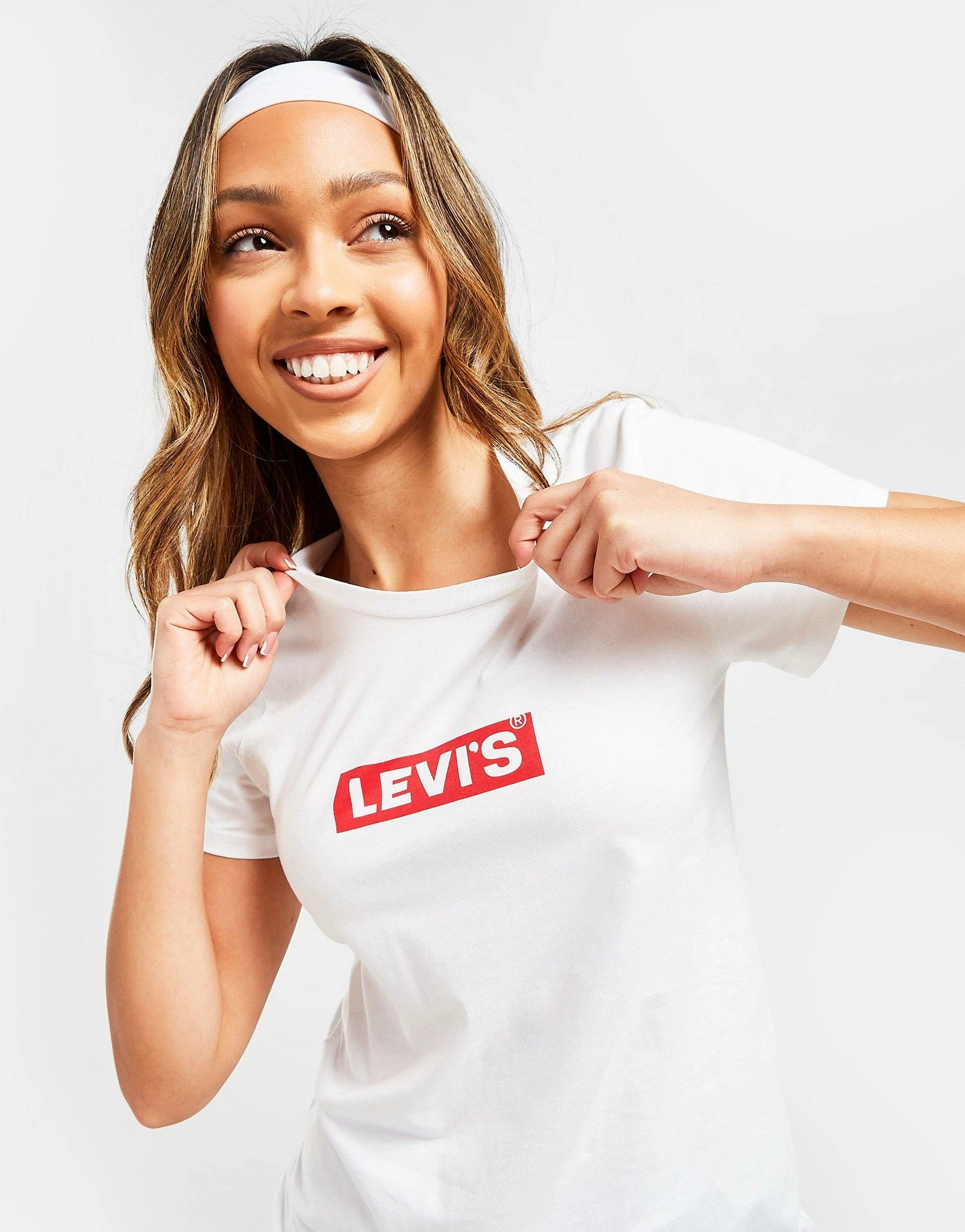 Hold det klassisk i denne dame Box Logo T-Shirt fra Levi’s. Kommer i hvid og er produceret i et blødt og holdbart bomuld. Har rund hals og korte ærmer. Afsluttet med rød box print på brystet sammen med signatur Levi’s branding. Tåler maskinvask.
