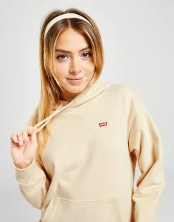 Kick back in signature style from Levi’s with this women’s Small Logo Overhead Hoodie from Levi’s. In a Creme Brulee colourway, this oversized pullover is made from ultra-soft cotton for fleecy comfort. It has a drawcord hood for custom coverage, as well as dropped shoulders, ribbed trims and a kangaroo pocket for a laidback look. Finished up with a signature Levi’s Tab logo embroidered to the chest. Machine washable. | Our model is 5’8″ and wears a size small.