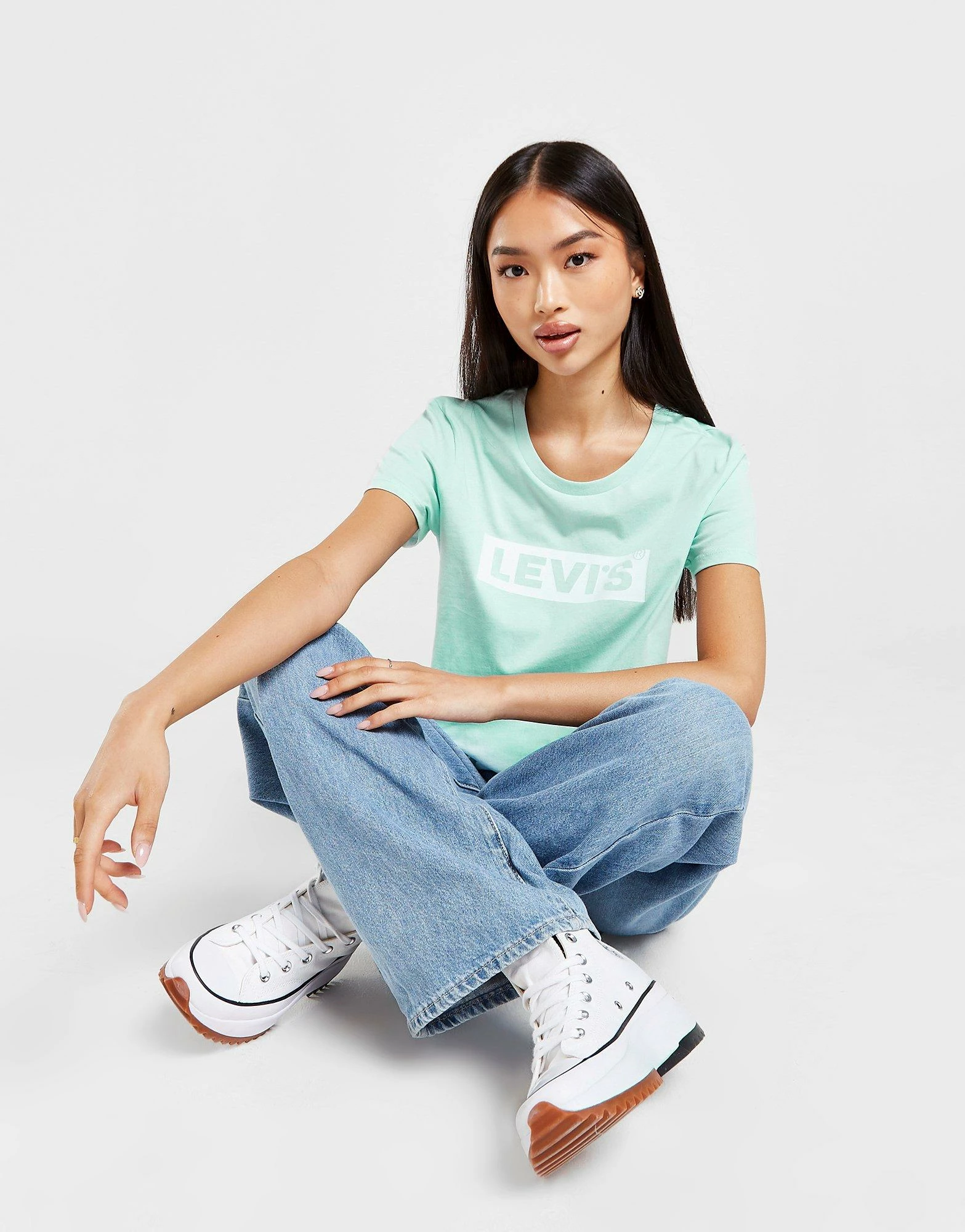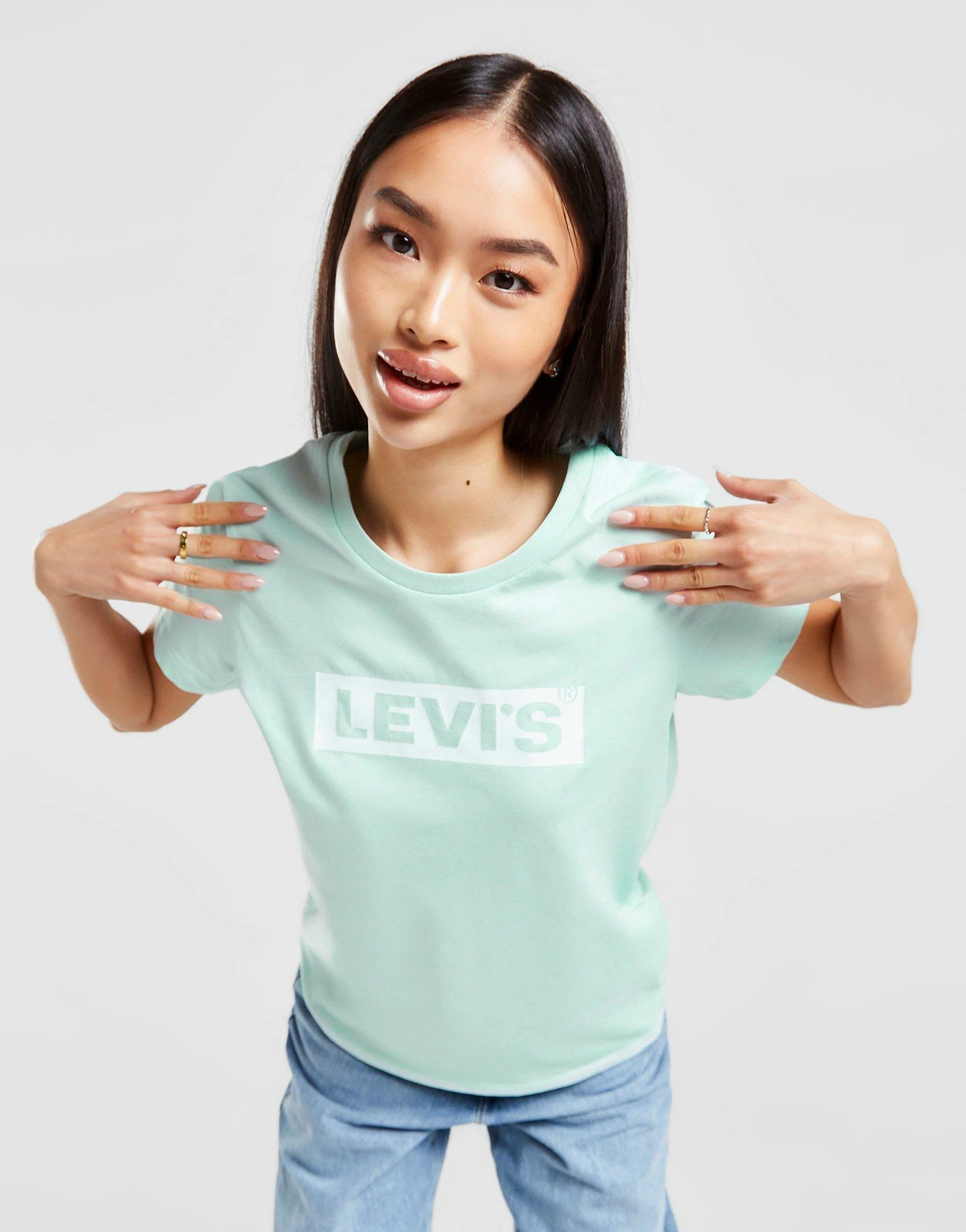 Refresh your summer essentials with this women’s Box Tab T-Shirt from Levi’s. In a Starlight Blue colourway, this tee is cut from soft cotton fabric for everyday comfort. It features short sleeves with a crew neckline and comes in a standard fit for a relaxed wear. Finished up with Levi’s box branding to the chest. Machine washable | Our model is 5’7.5″ and wears a size small.