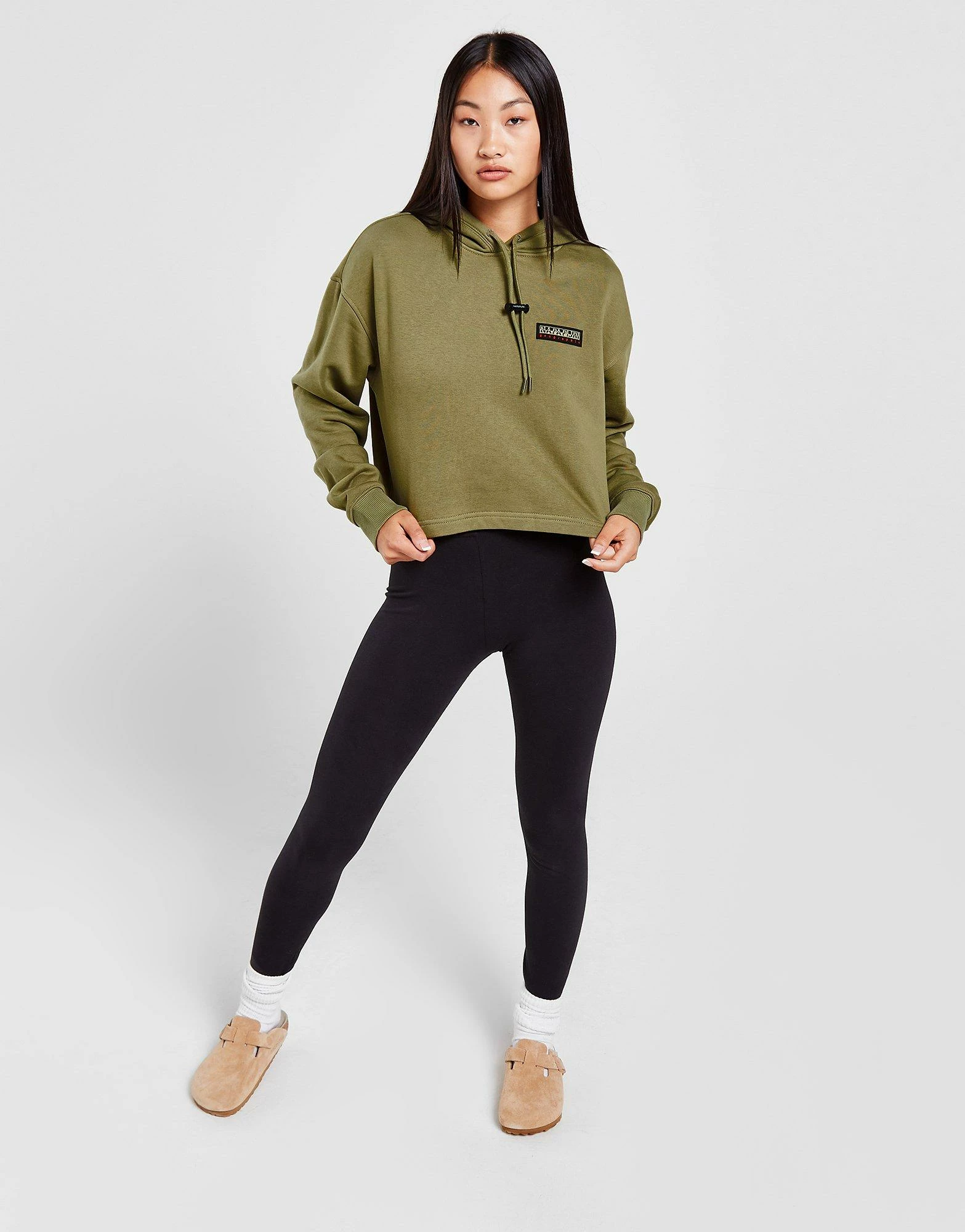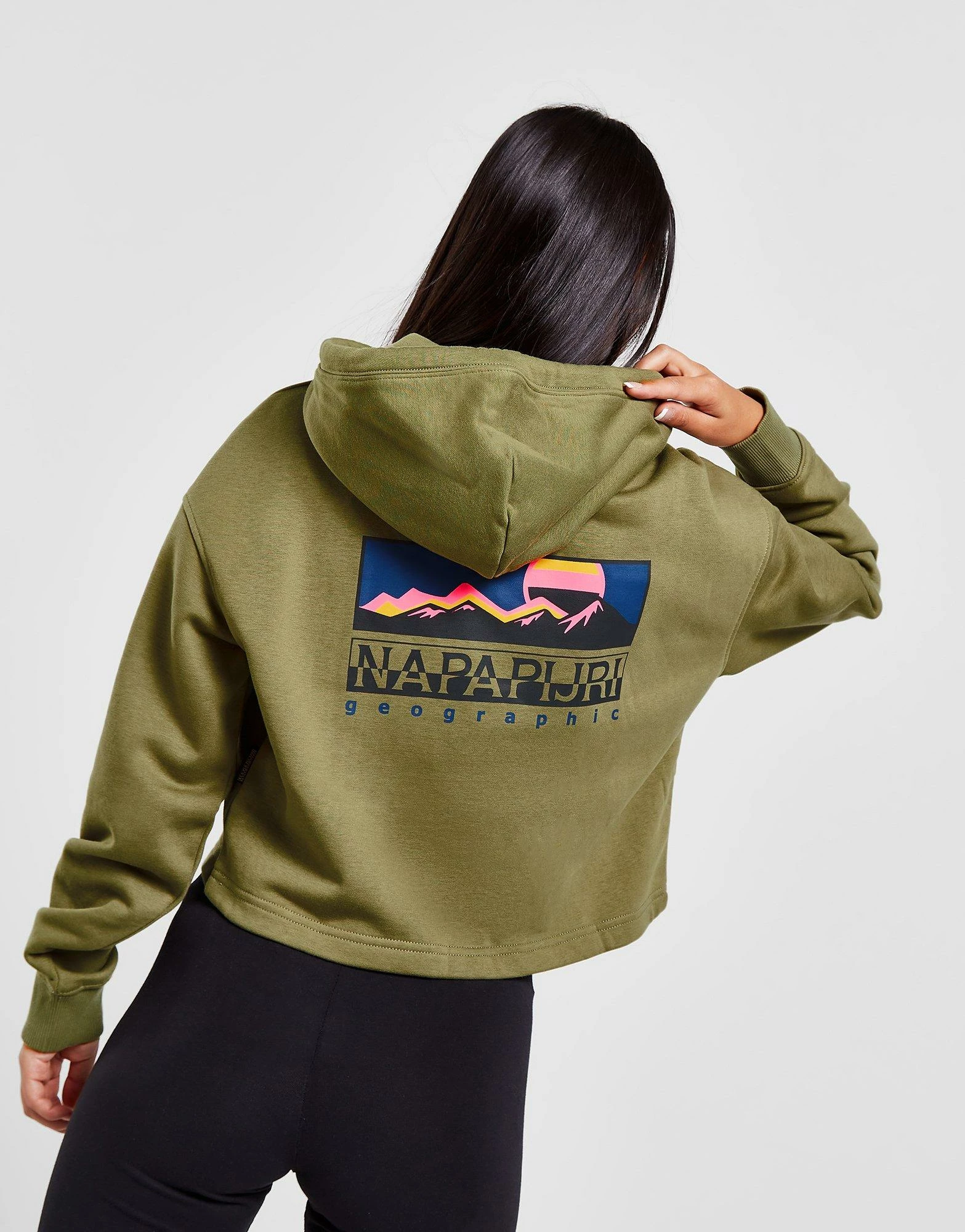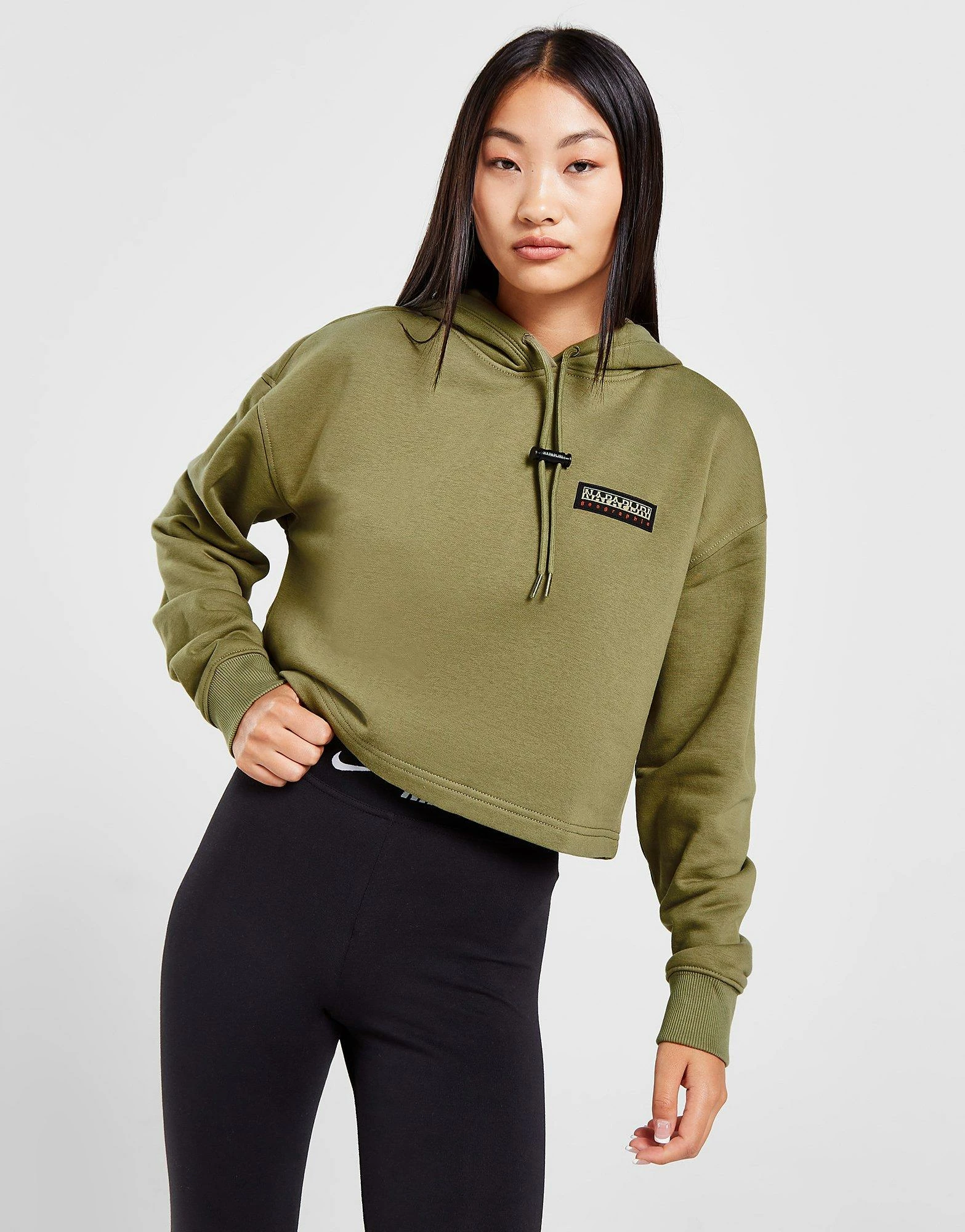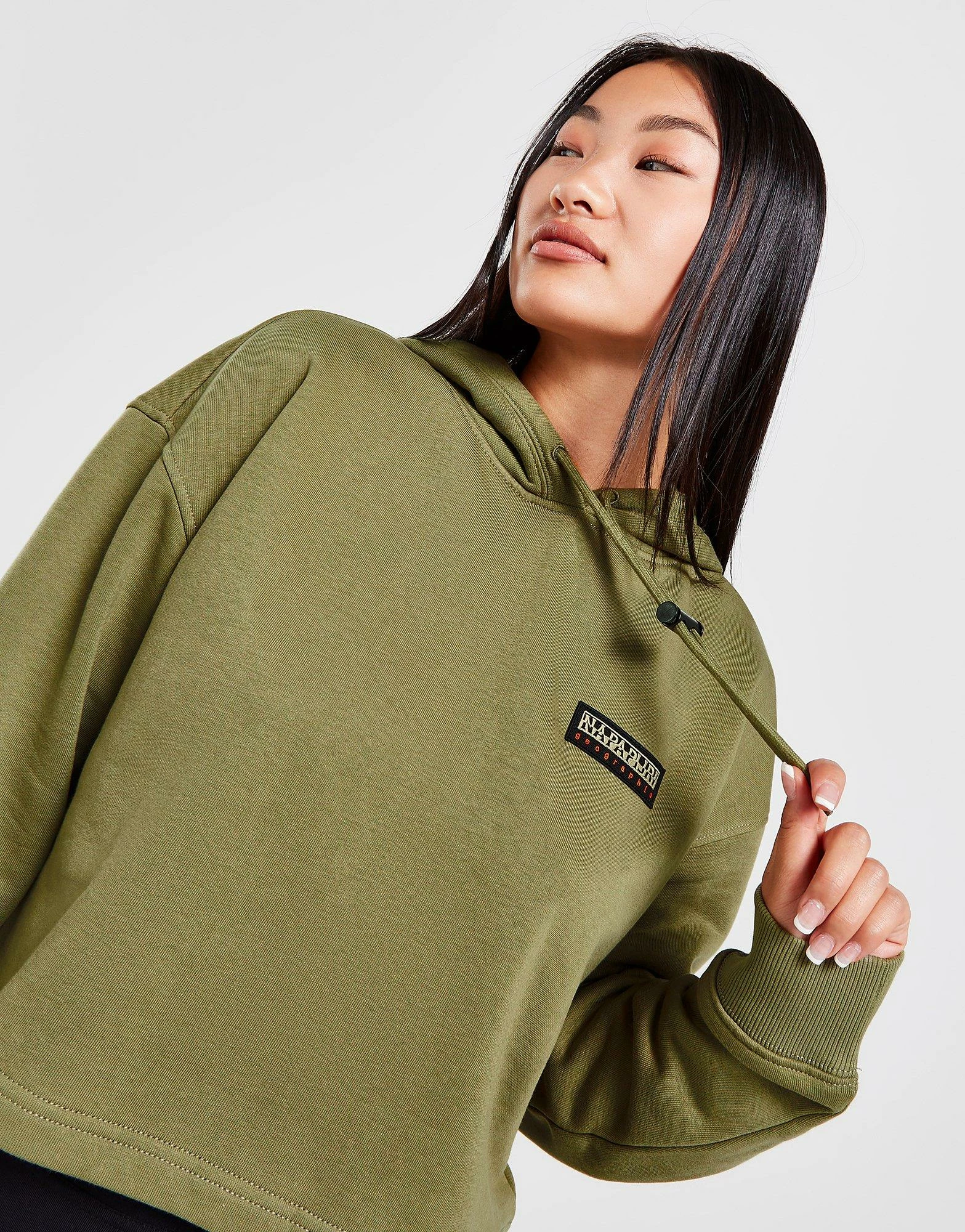 Keep covered on off-duty days with this women’s Back Graphic Crop Hoodie from Napapijri. In a Khaki colourway, this cropped-fit pullover has drawcord ties at the hood for a versatile look. It’s made from a plush cotton-poly blend for essential comfort, with dropped shoulders and ribbed cuffs for a laidback feel. Finished off with Napapijri branding to the chest and a bold graphic to the back. Machine washable. | Our model is 5’5.5″ and wears a size small.
