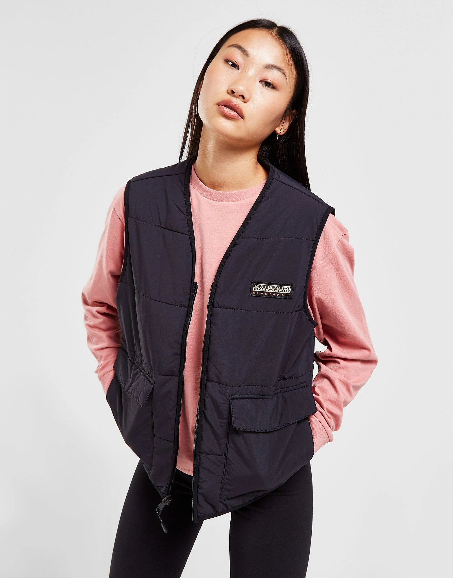 Don’t let the elements slow you down with this women’s Wild Gilet from Napapijri. Ready for the street or an outdoors adventure, this standard-fit vest is made with a light but durable poly fabric that’s water-repellent for lasting wear. It features recycled down-free padding to keep you toasty on colder days, full zip fastening for coverage and elasticated trims for a snug feel. With pockets to the front for storage, it’s signed off with Napapijri branding to the chest. | Our model is 5’5.5″ and wears a size small.