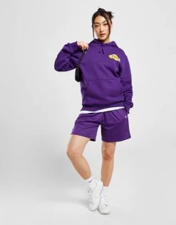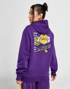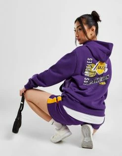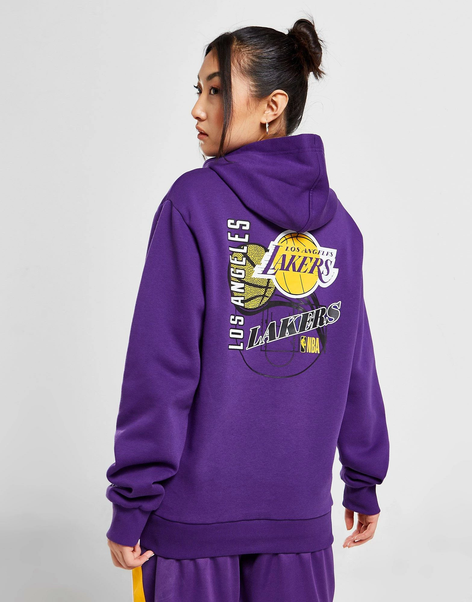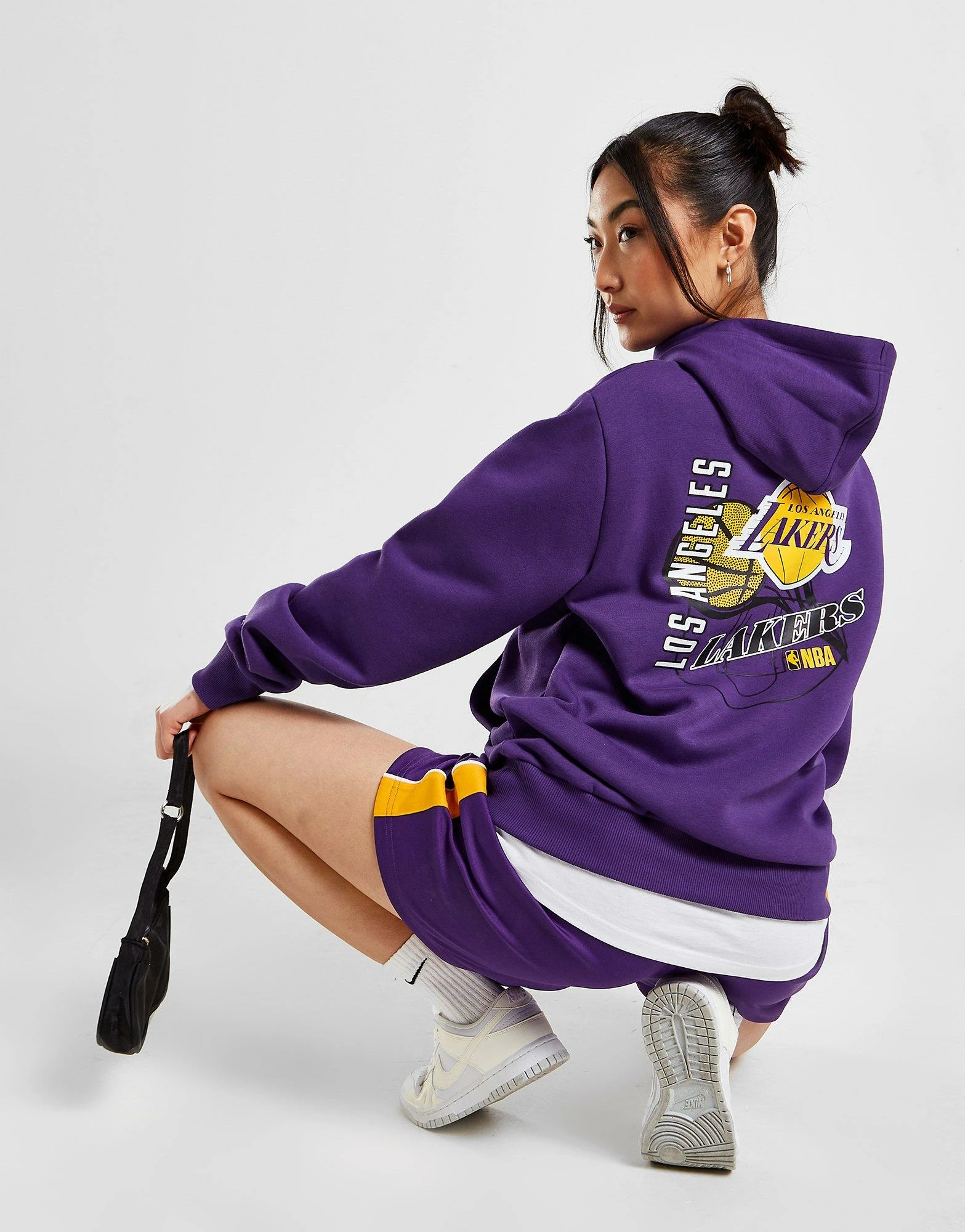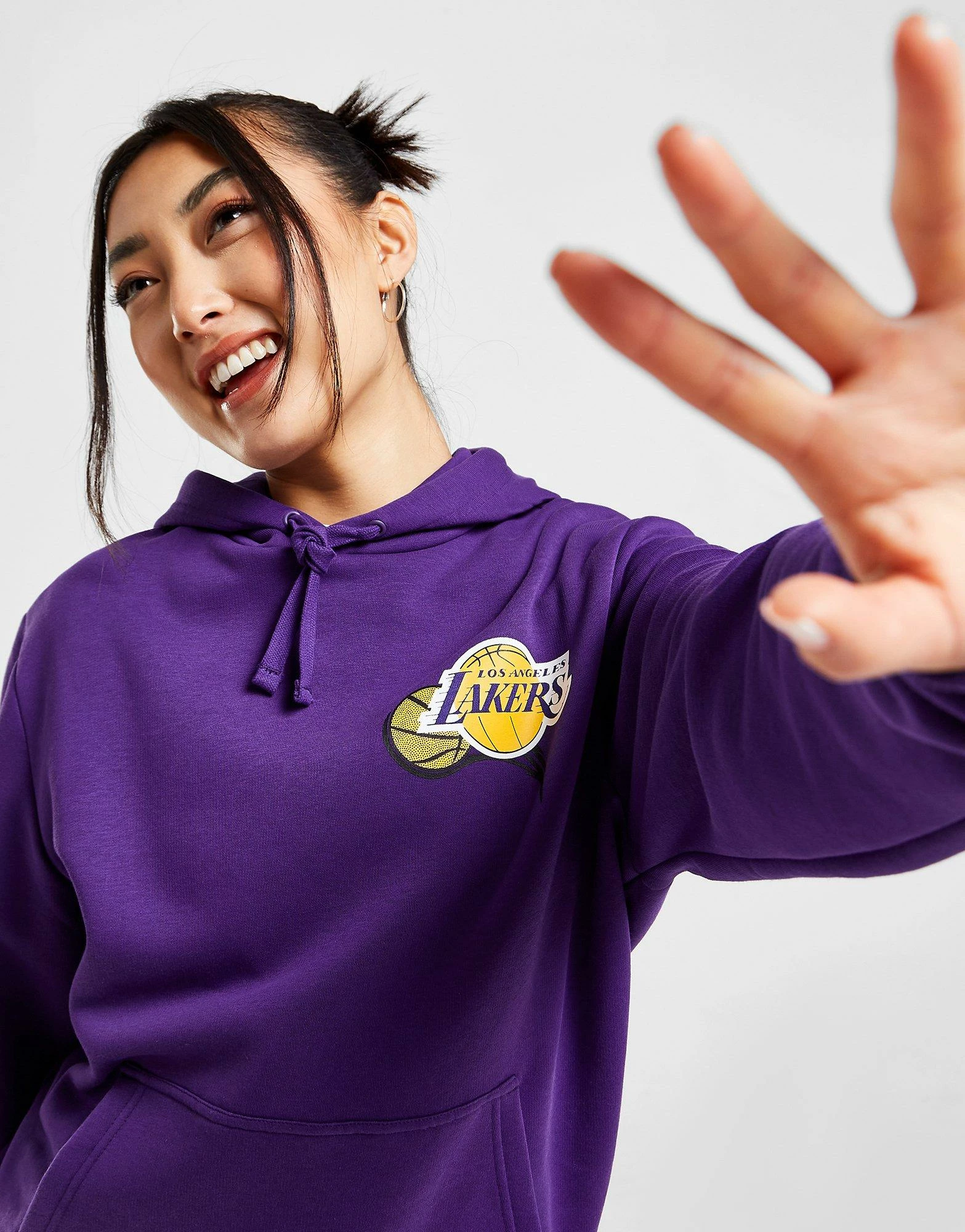 Rep your fave team from the courts to the sofa in this women’s NBA Los Angeles Lakers Back Graphic Hoodie from New Era. In a classic purple colourway, this loose-fit pullover is built from a soft yet durable cotton mix for fleecy comfort. It features a drawcord-adjustable hood for custom coverage, while ribbed trims and dropped shoulders offer a roomy feel. With a kangaroo pocket to the front, this hoodie is finished off with signature Lakers branding printed to the chest and back, as well as a New Era logo embroidered to the sleeve. Machin washable. | Our model is 5’8″ and wears a size small.