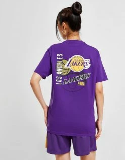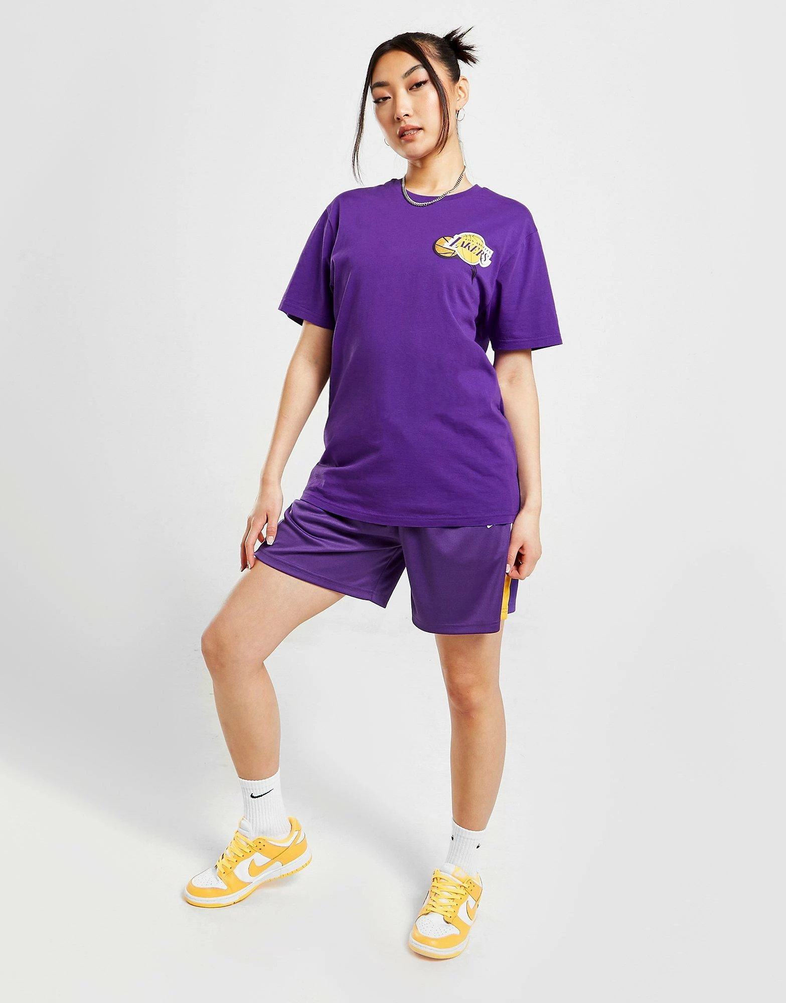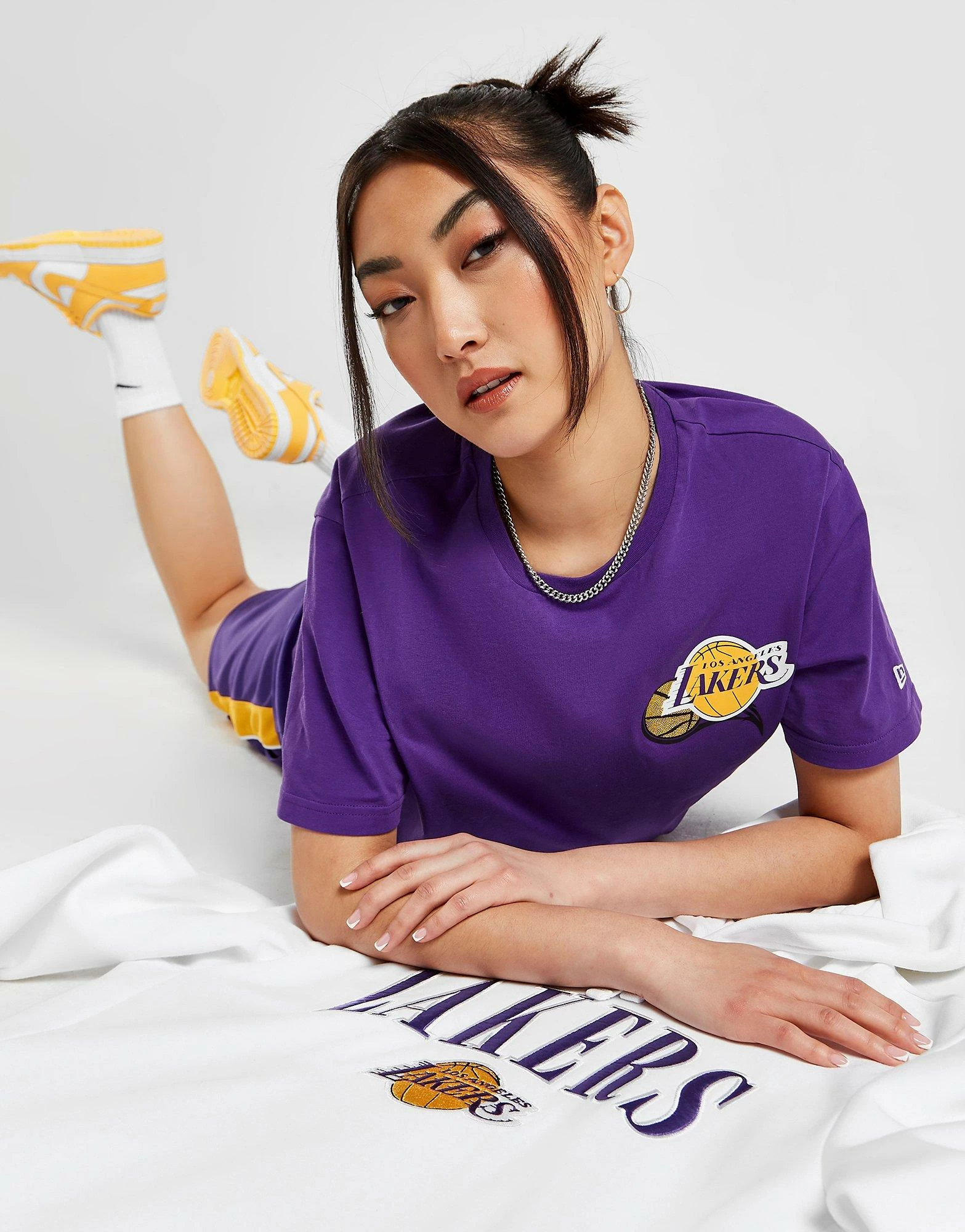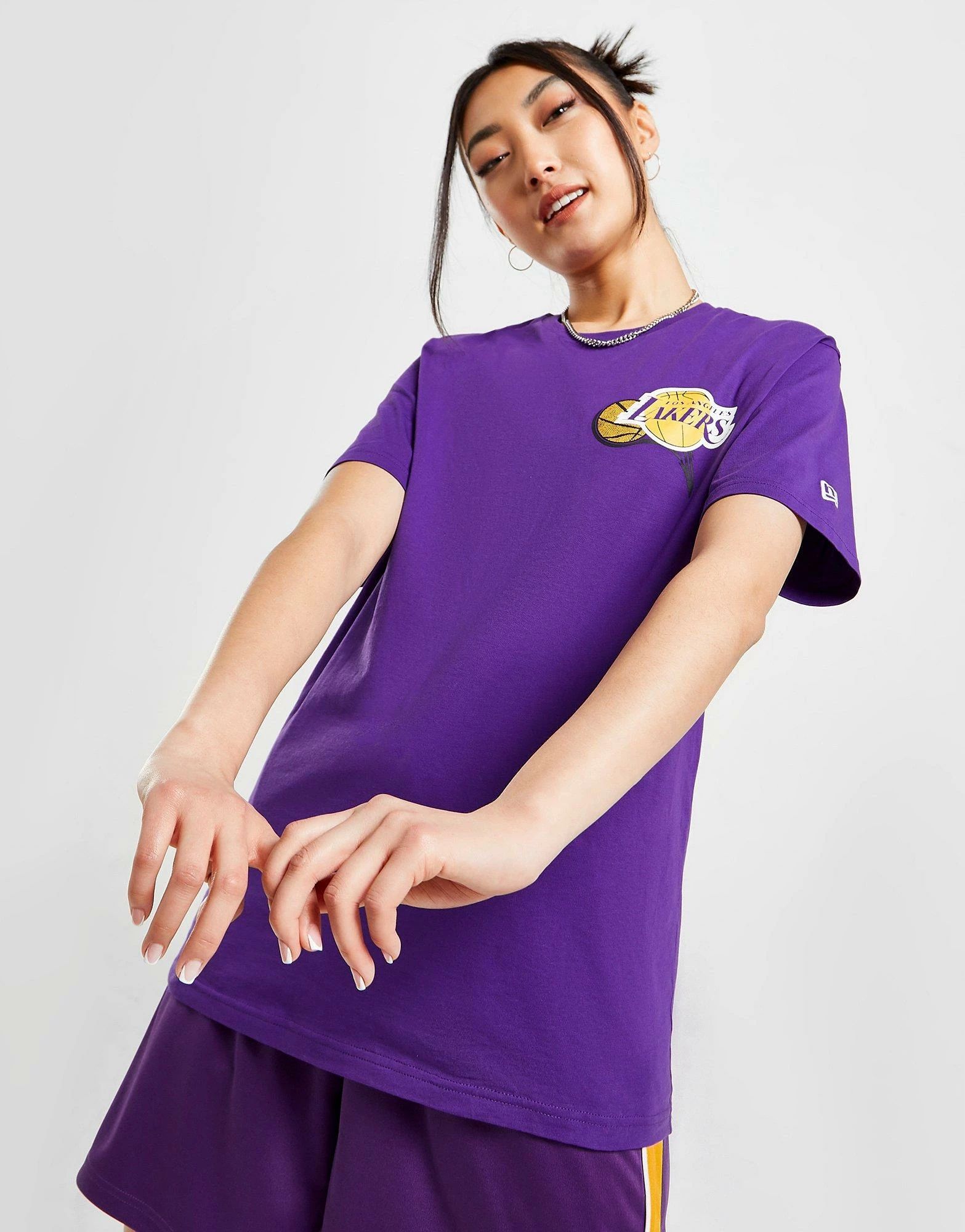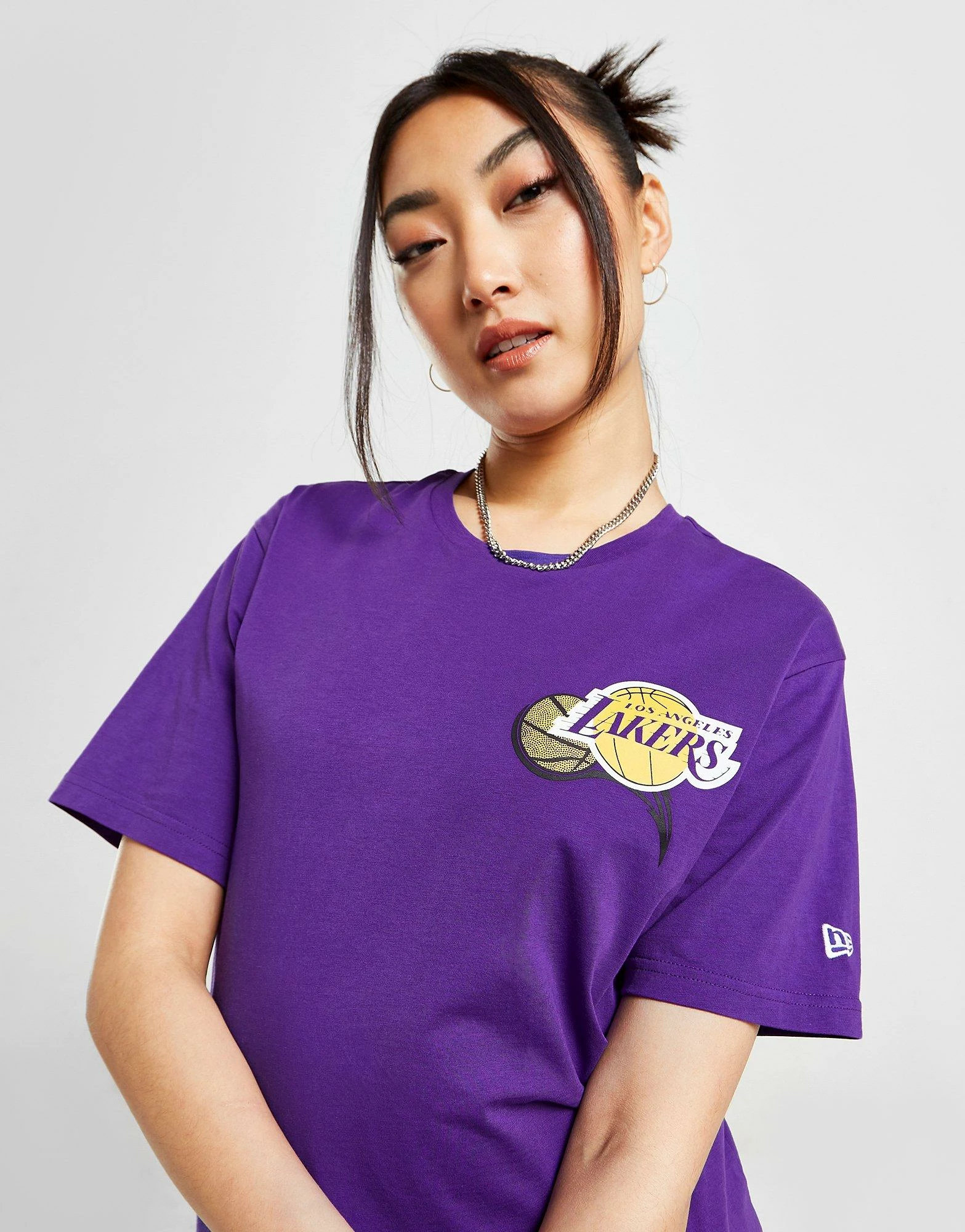 Kick back in signature b-ball style with this women’s NBA Los Angeles Lakers Back Graphic T-Shirt from New Era. Reppin’ the team’s classic purple colourway, this oversized top features a crew neckline, dropped shoulders and roomy short sleeves for a relaxed look and feel. Built from soft, lightweight cotton for all-day comfort, this tee is finished up with an embroidered New Era badge to the left sleeve and LA Lakers graphics to the chest and back. Machine washable. | Our model is 5’8″ and wears a size small.