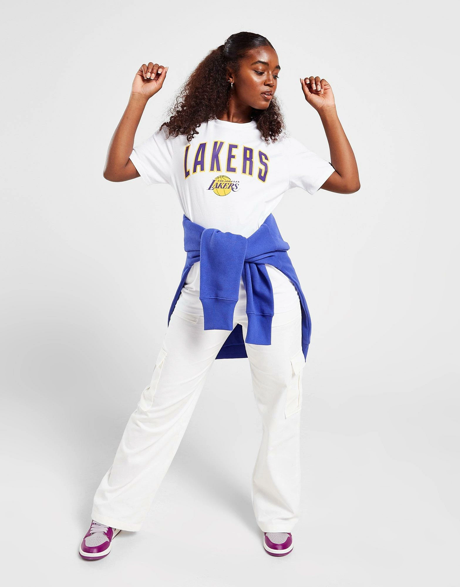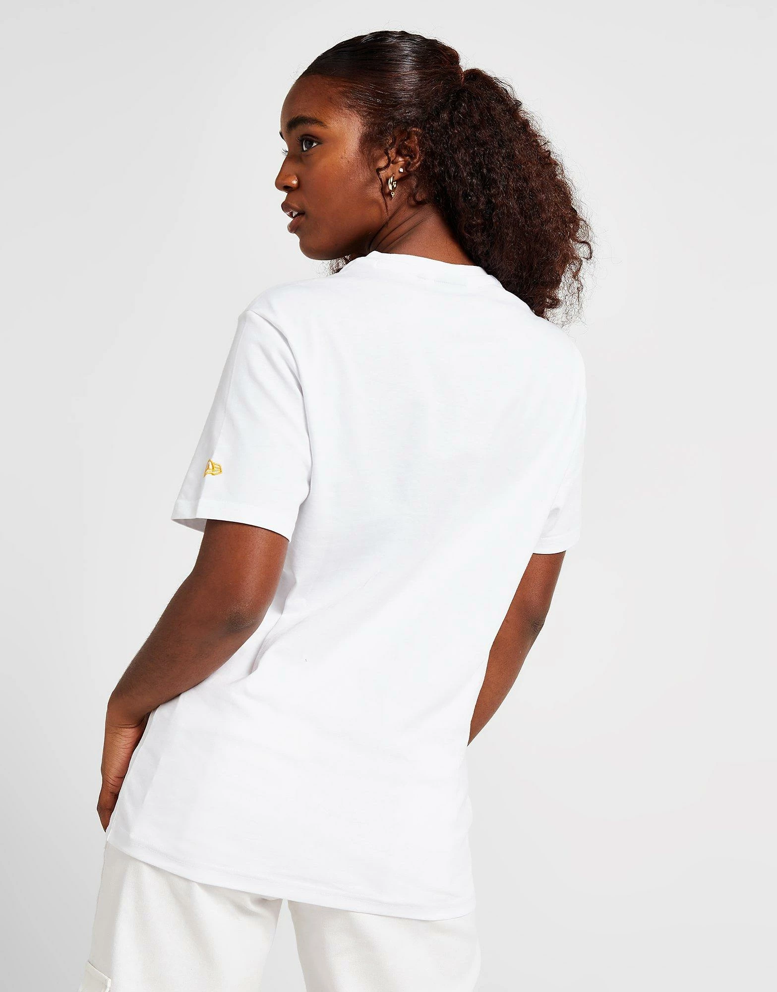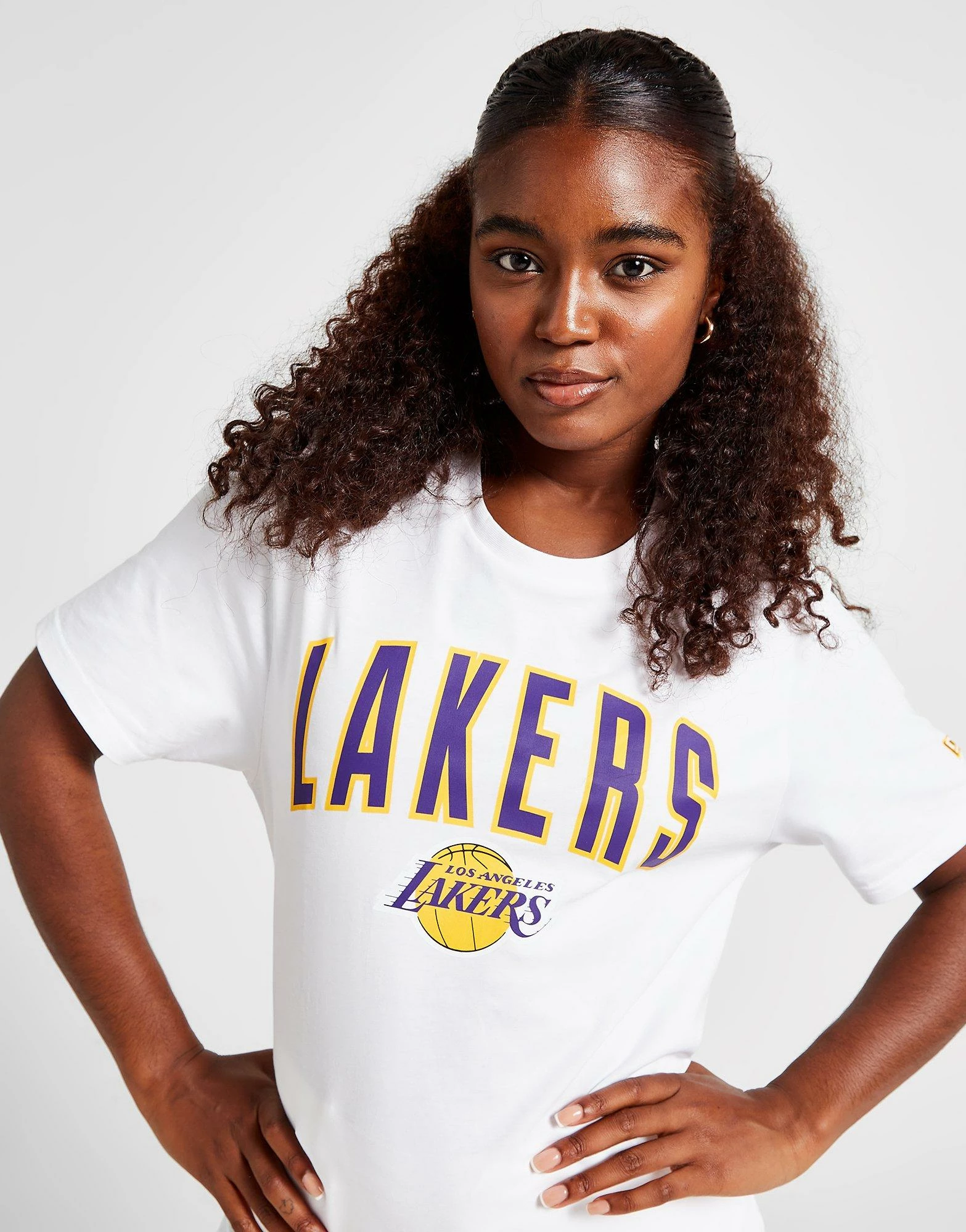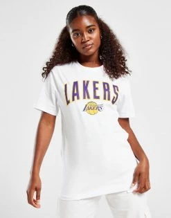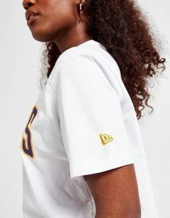 Refresh your summer-ready style with this women’s NBA Los Angeles Lakers Wordmark T-Shirt from New Era. In a crisp white colourway, this relaxed-fit top offers a roomy feel thanks to the baggy short sleeves, dropped hem and crew neckline. Built from super-smooth cotton for lightweight, unrestricted comfort, this tee is finished up with retro Lakers branding to the chest and a New Era badge embroidered to the left sleeve. Machine washable. | Our model is 5’8″ and wears a size small.