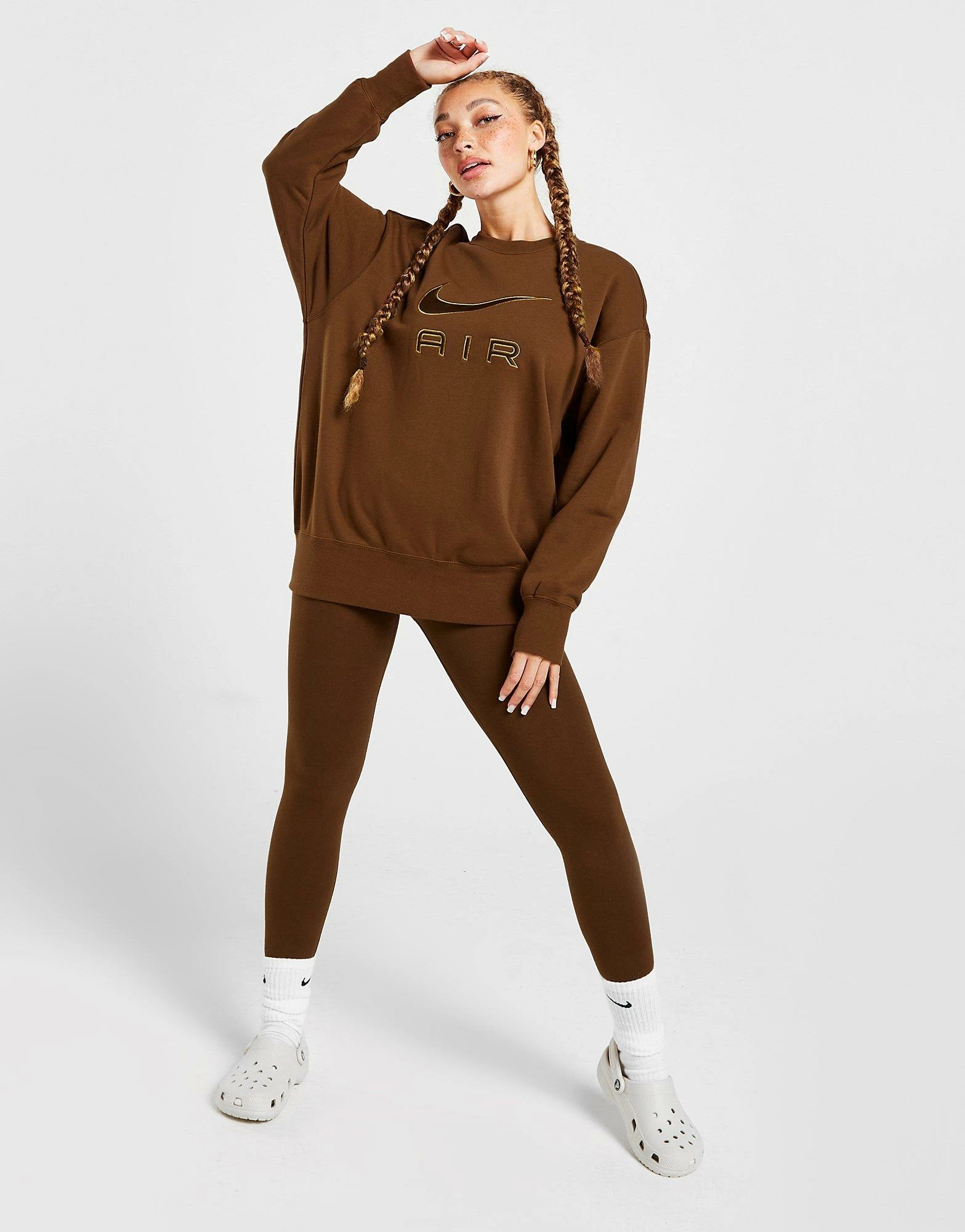 Få den lækreste Swoosh stil med denne behagelige Air Fleece Crew Sweatshirt fra Nike.