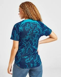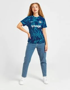 Rep it like your fave players when you train in this women’s Chelsea FC Pre Match Shirt from Nike. In a Chlorine Blue colourway, this regular-fit top is made from recycled poly fabric for a smooth lightweight wear. It features a round neckline and short sleeves, and uses sweat-wicking Dri-FIT tech for a cool and dry feel. This shirt is signed off with a contrasting Swoosh logo and the iconic Chelsea badge to the chest. Machine washable. | Our model is 5’6.5″ and wears a size small.