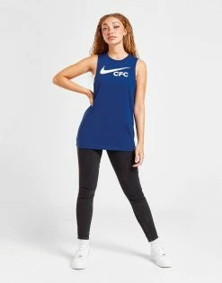 Rep your team from the gym to streets in this women’s Chelsea FC Swoosh Tank Top from Nike. Coming in a Rush Blue colourway, this standard-fit vest has a round neckline and regular armholes for a classic cut. Made from soft, lightweight cotton for lasting comfort, it’s finished up with contrasting Swoosh and Chelsea logos to the front. Machine washable.
