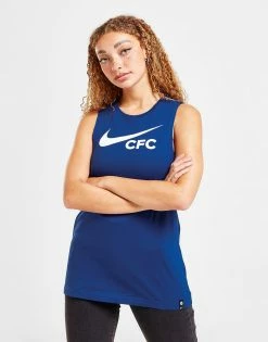Rep your team from the gym to streets in this women’s Chelsea FC Swoosh Tank Top from Nike. Coming in a Rush Blue colourway, this standard-fit vest has a round neckline and regular armholes for a classic cut. Made from soft, lightweight cotton for lasting comfort, it’s finished up with contrasting Swoosh and Chelsea logos to the front. Machine washable.