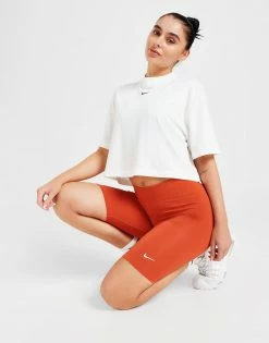 Add some sports-inspired heat to your ‘drobe with these women’s Core Cycle Shorts from Nike. Landing in a Mantra Orange colourway, these tight-fit shorts are made with a smooth polycotton blend with extra stretch for essential comfort. They feature a high-rise elasticated waistband for a secure feel, and are finished up with Nike’s iconic Swoosh above the hem. Machine washable. | Ou model is 5’7″ and wears a size small.