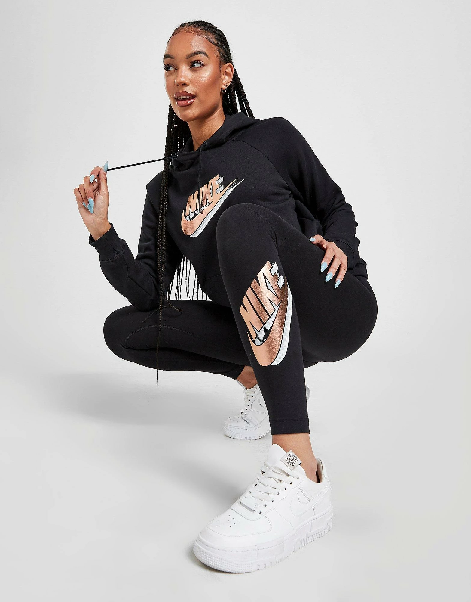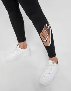 Upgrade your comfort and your rotation with these women’s Double Futura Leggings from Nike. Exclusive, these tight-fit leggings come in a Black colourway and a built from a lightweight and stretchy cotton fabric to give you comfort and freedom of movement. They feature sweat-wicking tech to keep you dry and comfortable, as well as a high-rise elastic waistband for a snug fit. They’re signed off with Nike’s Futura branding in a Metallic Red Bronze colourway to the lower leg. Machine washable. | Our model is 5’7″ and wears a size small.