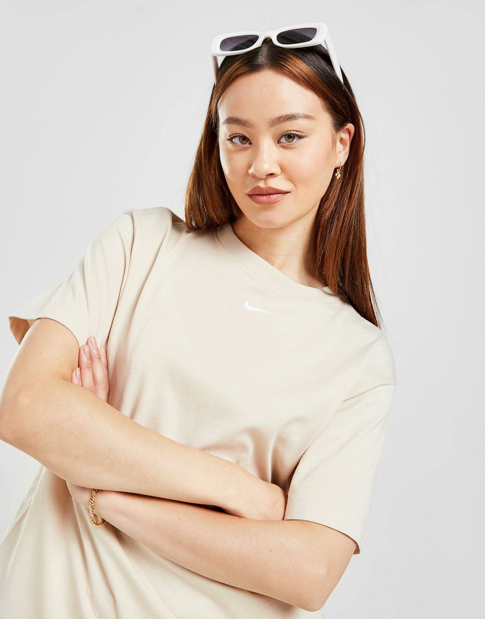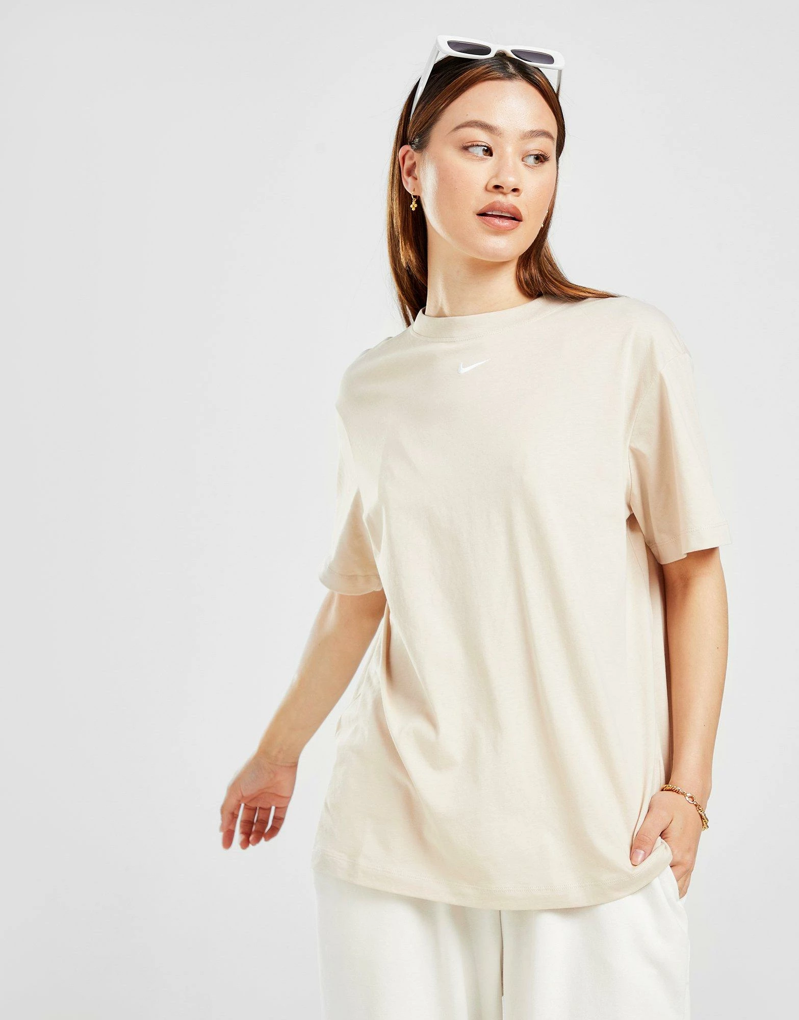 Refresh your essentials rotation with this women’s Sportswear Essential Oversized T-Shirt from Nike. In a Sanddrift colourway, this baggy, oversized tee is cut from smooth cotton fabric, at least 75% of which is made from organic cotton fibres. It features short sleeves, dropped shoulders and has a ribbed crew neckline for added stretch. Finished up with a signature Swoosh embroidered to the chest. Machine washable | Our model is 5’10” and wears a size small.