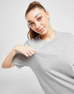 Cop a laidback vibe with this women’s Sportswear Essential Oversized T-Shirt from Nike. Coming in a Dark Grey Heather colourway, this loose-fit tee made is using a lightweight cotton fabric that has a soft feel to keep you cosy. It features crew neckline, dropped shoulders with short and baggy sleeves for a roomy feel. Finished with the iconic Swoosh embroidered to the chest. Machine washable. | Our model is 5’6.5″ and wears a size small.