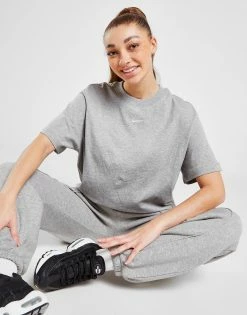 Cop a laidback vibe with this women’s Sportswear Essential Oversized T-Shirt from Nike. Coming in a Dark Grey Heather colourway, this loose-fit tee made is using a lightweight cotton fabric that has a soft feel to keep you cosy. It features crew neckline, dropped shoulders with short and baggy sleeves for a roomy feel. Finished with the iconic Swoosh embroidered to the chest. Machine washable. | Our model is 5’6.5″ and wears a size small.
