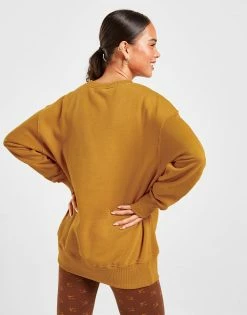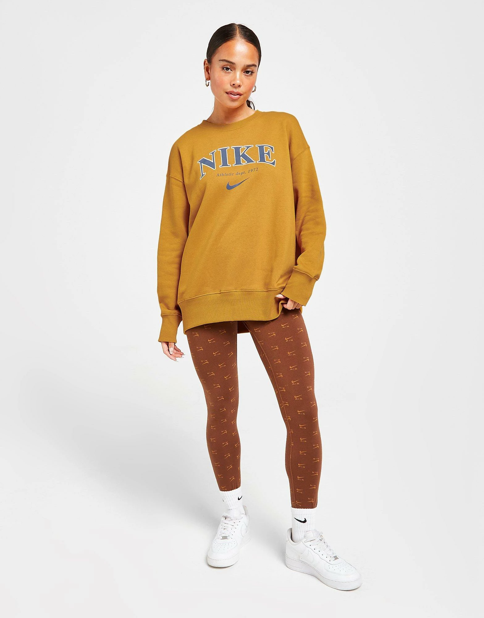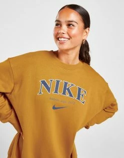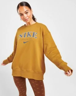 Level up your chill-day looks with this women’s Fleece Varsity Oversized Crew Sweatshirt from Nike. Coming in a Gold colourway, this sweatshirt is made with soft, fuzzy Phoenix fleece for essential comfort. It fits oversized for a laidback vibe, and features a ribbed crew neckline and long, roomy sleeves with drop shoulders. With stretchy ribbed trims to secure the shape, it’s finished up with classic Nike branding at the chest. Machine washable. | Our model is 5’6″ and wears a size small.
