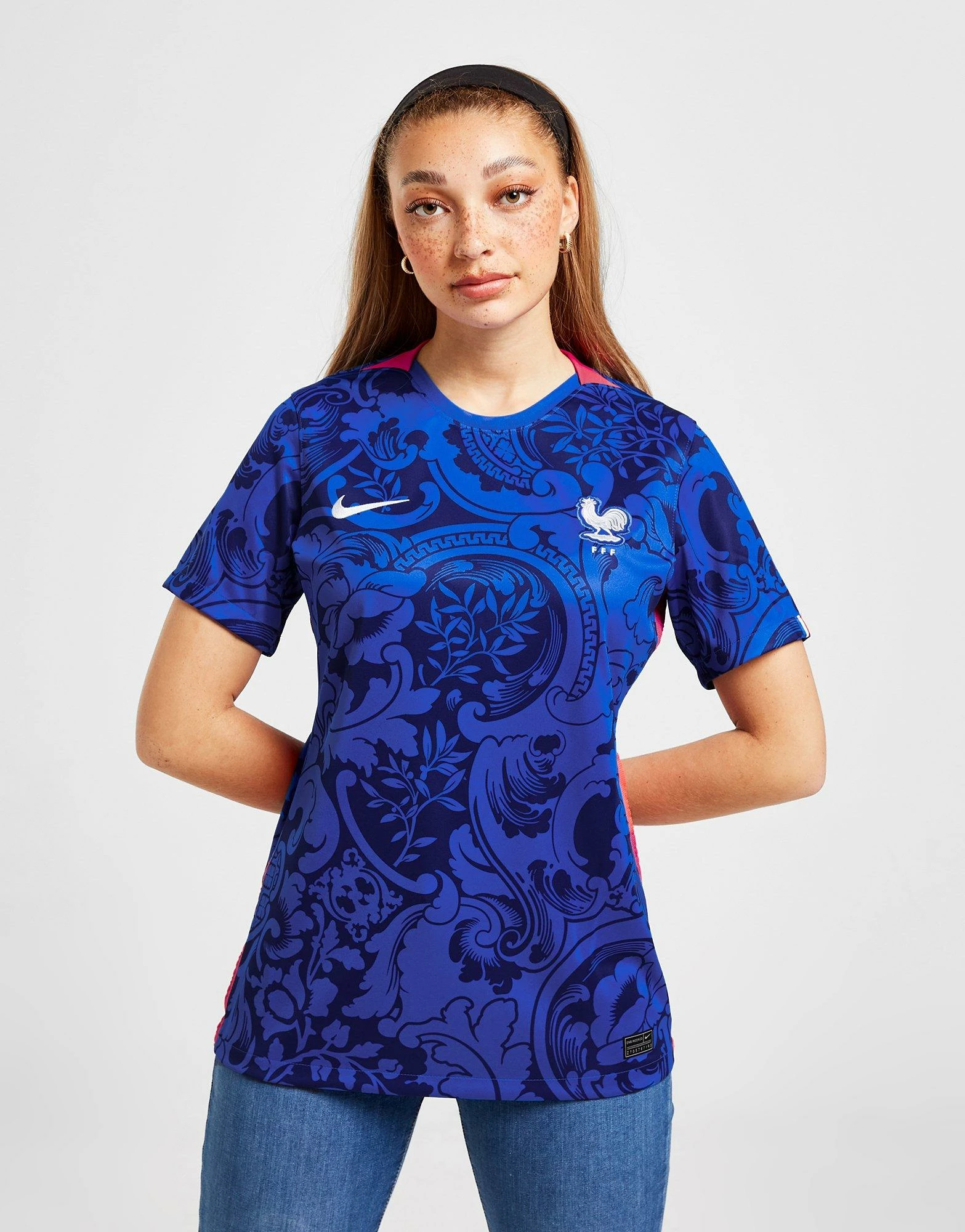 Back your side with this women’s France WEC 2022 Home Shirt from Nike. In a Hyper Cobalt colourway, this slim-fit shirt is made from lightweight poly fabric using at least 75% recycled fibers. It has sweat-wicking tech for cool, dry comfort, and features a crew neckline and short sleeves. With a tonal floral print, this shirt features a crew neckline, short sleeves and contrasting trims in Siren Red. Finished with Swoosh branding and the iconic France crest to the chest. Machine washable.