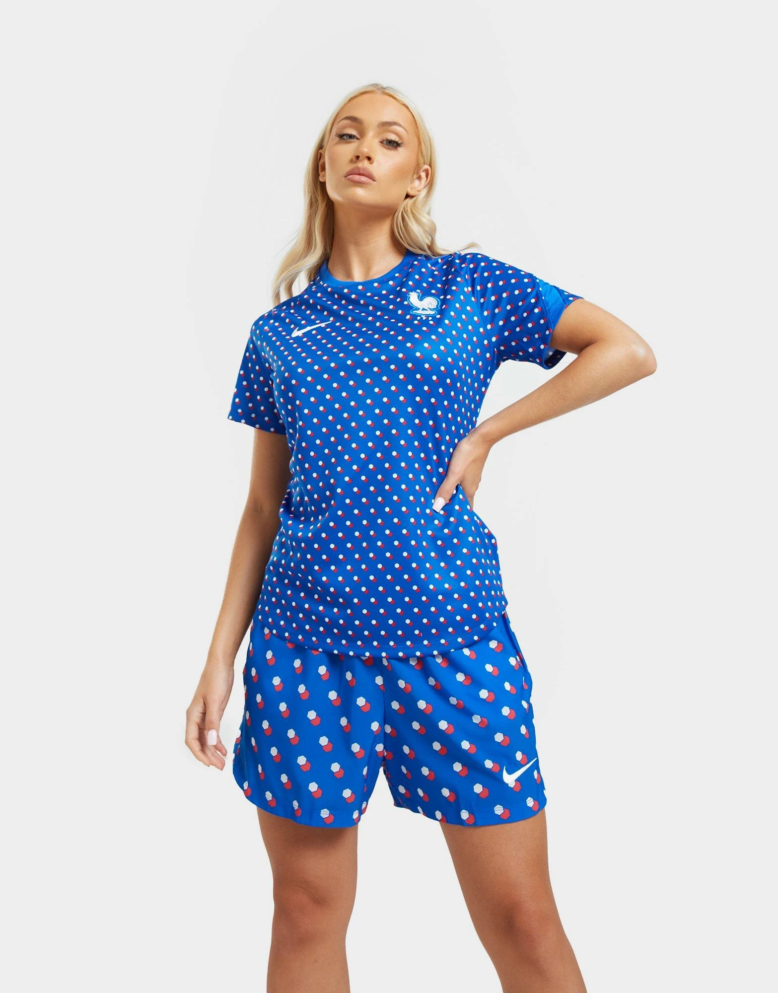 From training to game days, keep comfy and show your support in these women’s France WEC Track Shorts from Nike. In a Blue colourway with an all-over print, these shorts are made from stretchy poly fabric. They come with Dri-FIT tech to wick away sweat, and feature an elasticated waistband with an adjustable draw cord for a custom fit. With zip pockets for your essentials, these shorts are finished up with France team detailing and a Swoosh logo to the leg. Machine washable.