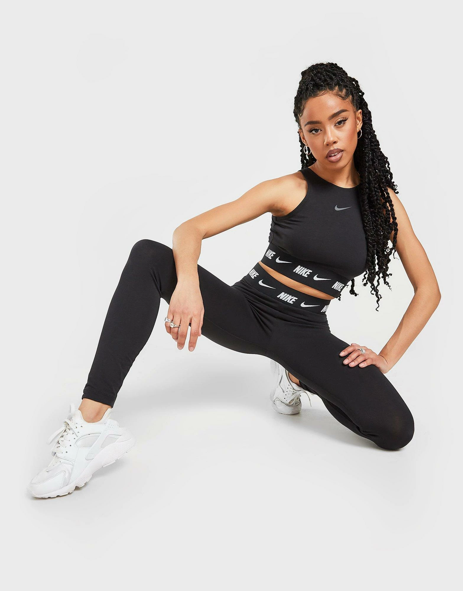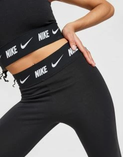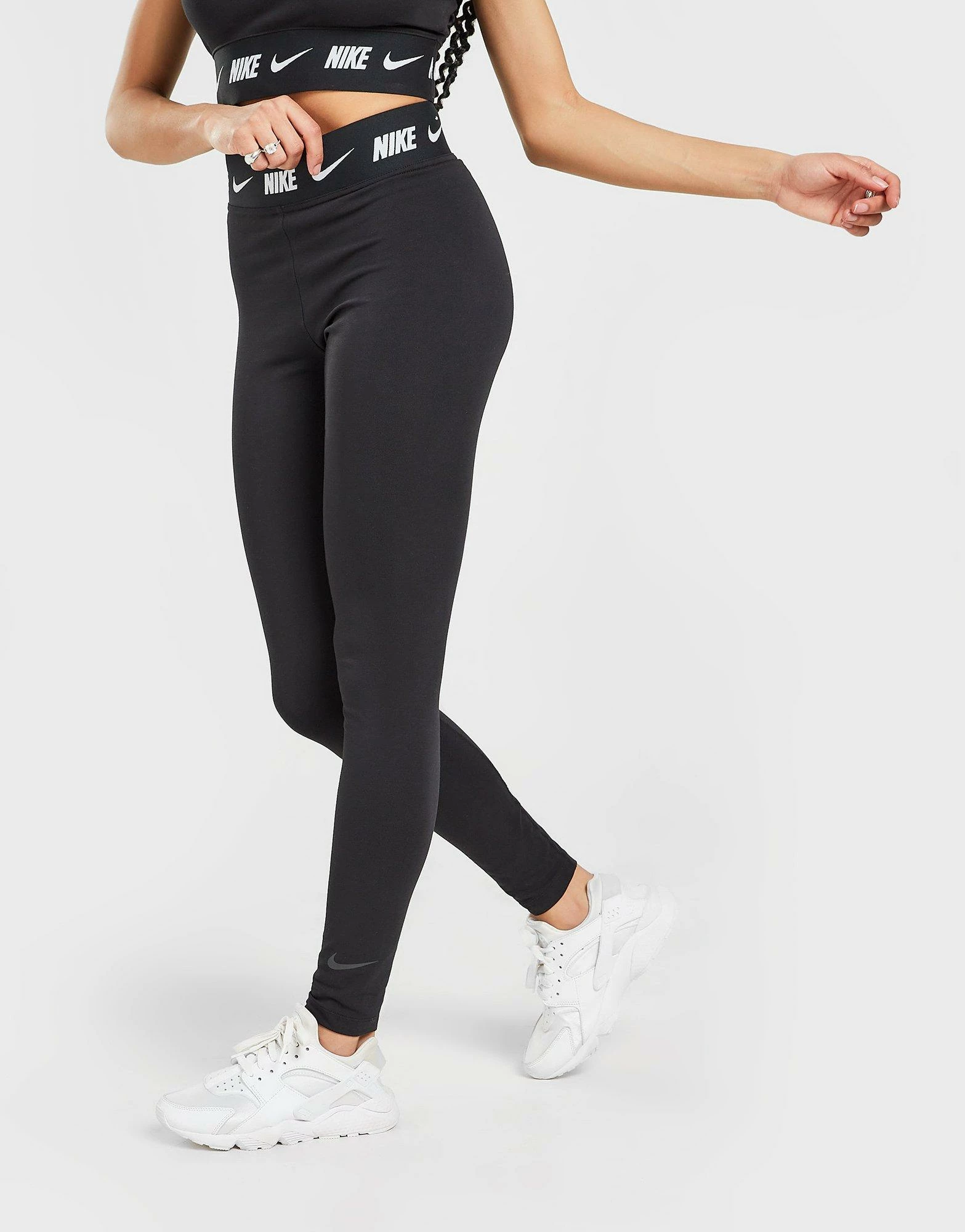 Upgrade your casual wear with these women’s High Waisted Logo Leggings from Nike. These tight-fit leggings are made from a super-smooth and stretchy cotton poly blend for maximum and lasting comfort. In a versatile Black colourway, they feature a high-waisted elasticated waistband for coverage and a supportive feel. Signed off with repeat Nike branding to the waistband and the Swoosh to the lower leg. Machine washable. | Our model is 5’8″ and wears a size small.