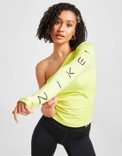 Update your gym ‘drobe with some heat from the Swoosh by coppin’ this Long Sleeve Asymmetrical Top from Nike. In a Light Lemon Twist colourway, this top is made from smooth, stretchy poly blended fabric for a flexible feel. It features sweat-wicking tech to keep you dry and comfy throughout your sesh and comes in a tight, snug fit so that nothing gets in your way. Finished up with a Swoosh and Nike branding down the sleeve. Machine washable.