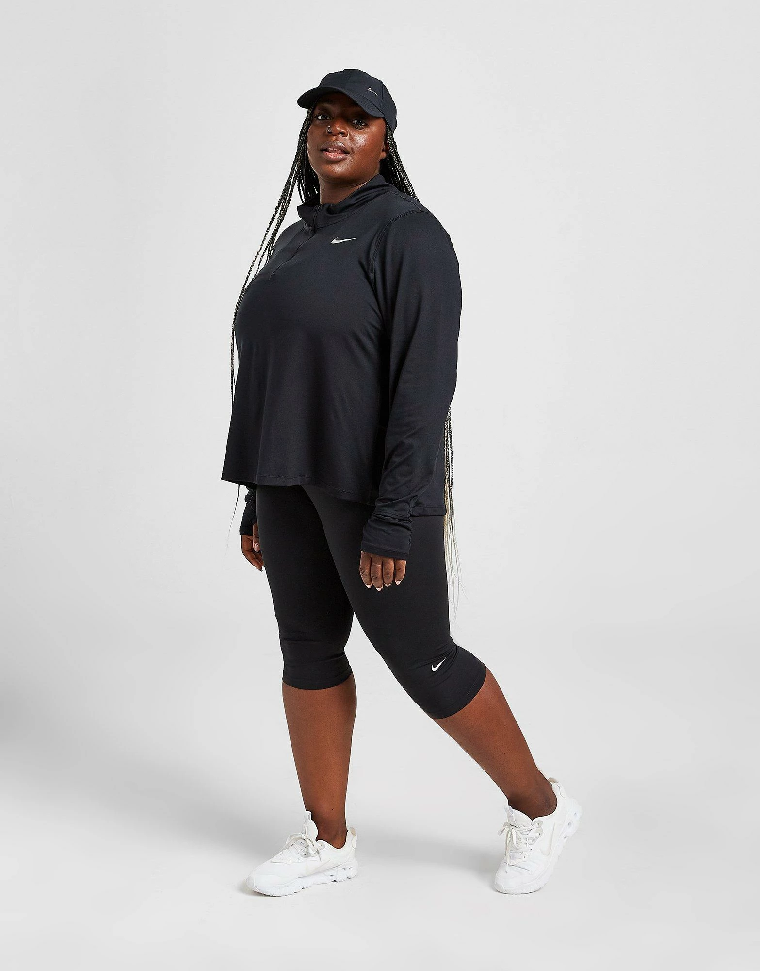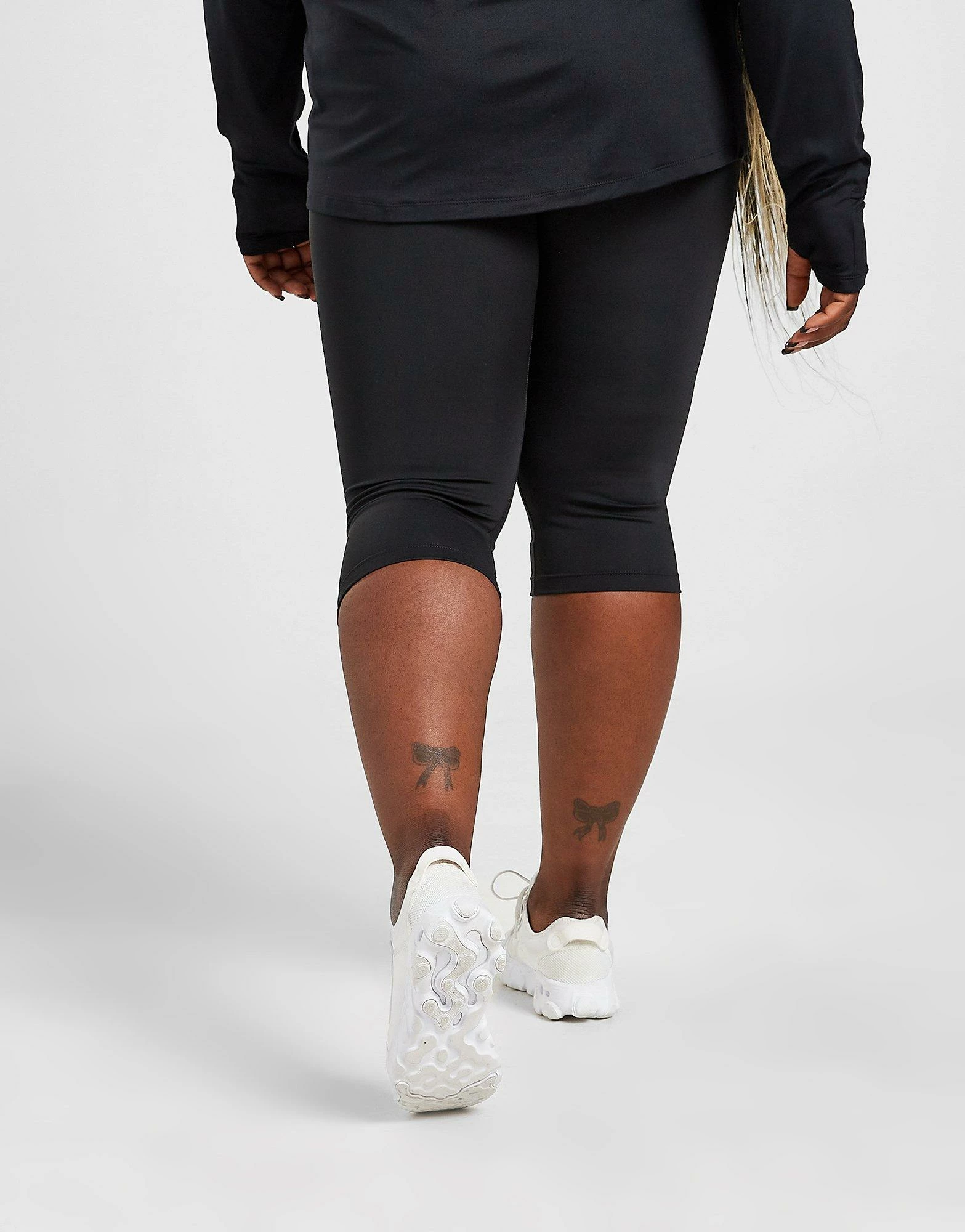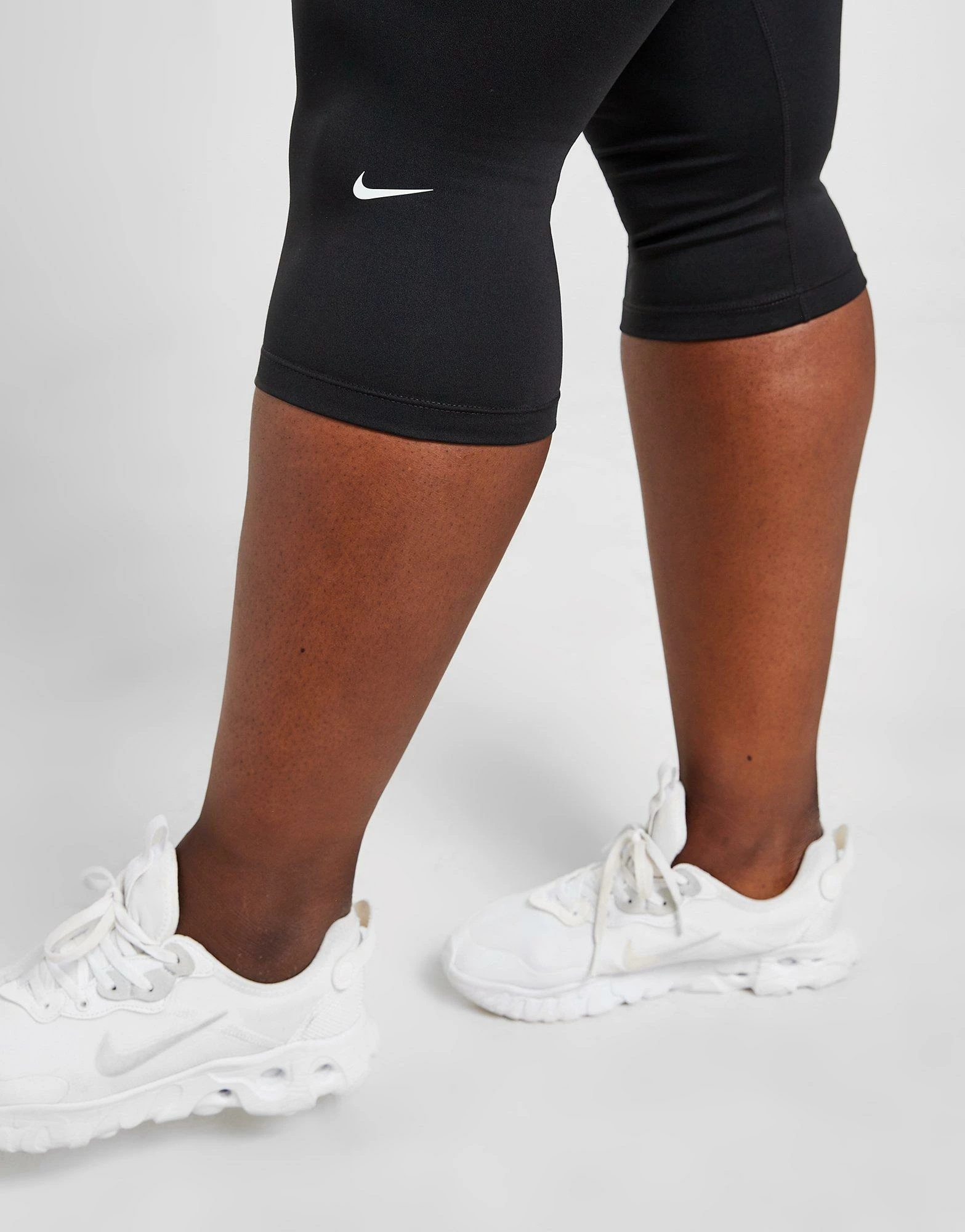 Whether you’re chillin’ out or headed to the gym, keep comfy and look stylish in these women’s One Plus Size Capri Leggings from Nike. In a sleek black colourway, these tight-fit leggings are made with a smooth, stretchy poly blend, built with Dri-FIT tech to keep you feeling cool and comfortable. They feature an elasticated mid-rise waistband with two hidden pockets, with capri-length legs. The ‘V’ shape at the back adds a smooth silhouette. Signed off with a mini Swoosh logo at the lower leg. Machine washable. | Our model is 5’7″ and wears a size 1X.