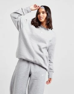 Level up your everyday staples with this women’s Phoenix Fleece Oversized Crew Sweatshirt from Nike. Comin’ in a Dark Grey Heather colourway, this sweatshirt is made with soft brushed fleece for cosy comfort. It fits oversized, and has a ribbed crew neckline and long, drop-shoulder sleeves for a laidback vibe. With tight ribbed trims to secure the fit, it’s finished up with Nike’s iconic Swoosh embroidered at the chest. Machine washable. | Our model is 5’6″ and wears a size small.