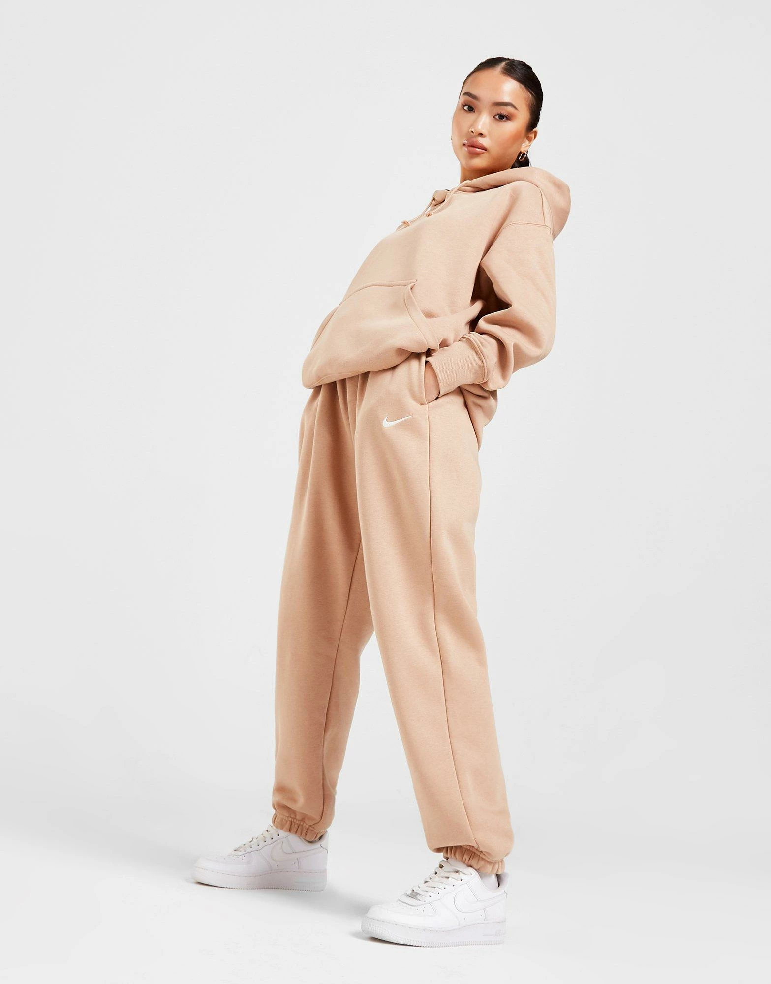 Call in the cosy vibes with these women’s Phoenix Fleece Oversized Joggers from Nike. In a Hemp colourway, these joggers are cut from light, fleecey fabric for total comfort at all times. They feature an elasticated, high-rise waistband for a relaxed fit, with ribbed cuffs to show off your kicks and side pockets for your essentials. They come in a baggy, oversized fit for a laidback wear and are finished up with Nike Swoosh branding to the leg. Machine washable | Our model wears a size small.