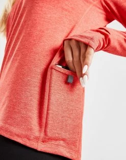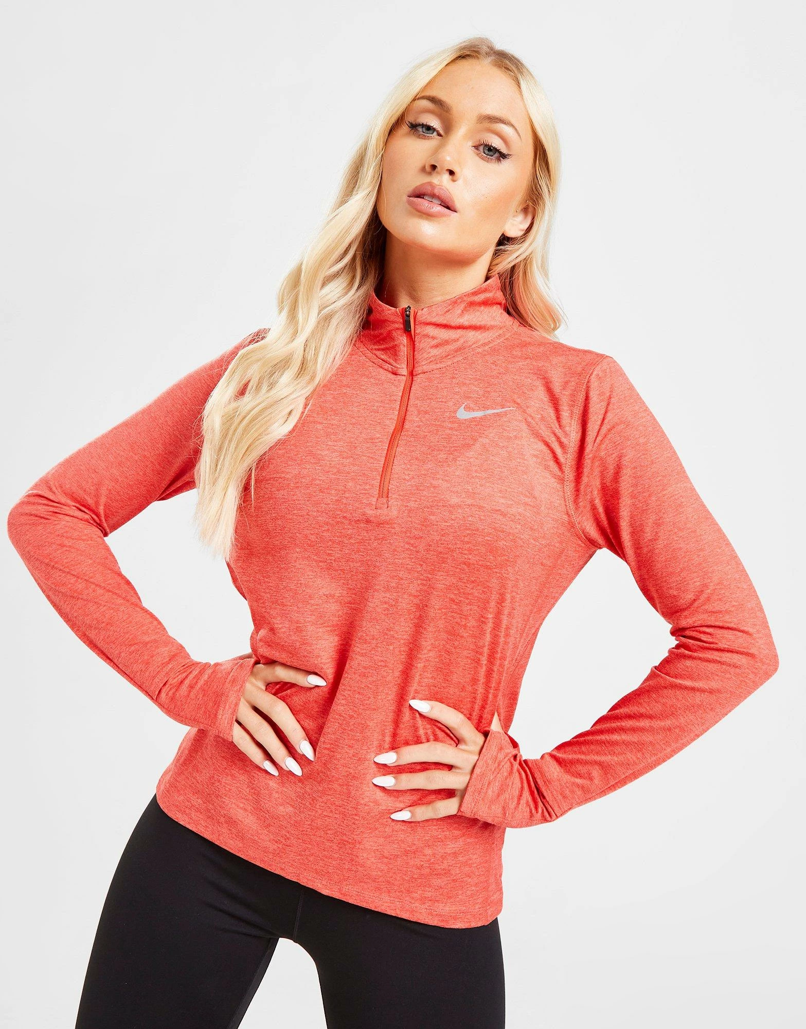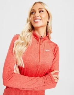 Elevate your training essentials with this women’s Running Element 1/4 Zip Track Top from Nike. Landing in a Light Crimson colourway, this standard-fit top is made with super-smooth, stretchy recycled poly fabric for lasting comfort. It’s crafted with sweat-wicking AEROREADY tech, it features a quarter zip closure and a raised collar to adjust your look and your airflow, as well as long sleeves with thumb loops for a secure, streamlined fit. It has a pocket on the side to stash the essentials, and is finished up with signature Nike branding at the chest. Machine washable. | Our model is 5’5″ and wears a size small.
