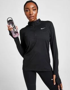 Take your outdoor workout next level with this women’s Running Element 1/4 Zip Track Top from Nike. Made from a durable poly-elastane blend, the top utilises Nike’s Dri-FIT technology which works to wick sweat away from your skin, keeping you cool and dry as you train. With a high rise collar and 1/4 zip for optional ventilation, the sleeves feature long ribbed cuffs and thumb holes for a comfortable wear. In a stealthy black colourway, the top is finished with a reflective white swoosh to the chest. Machine washable.