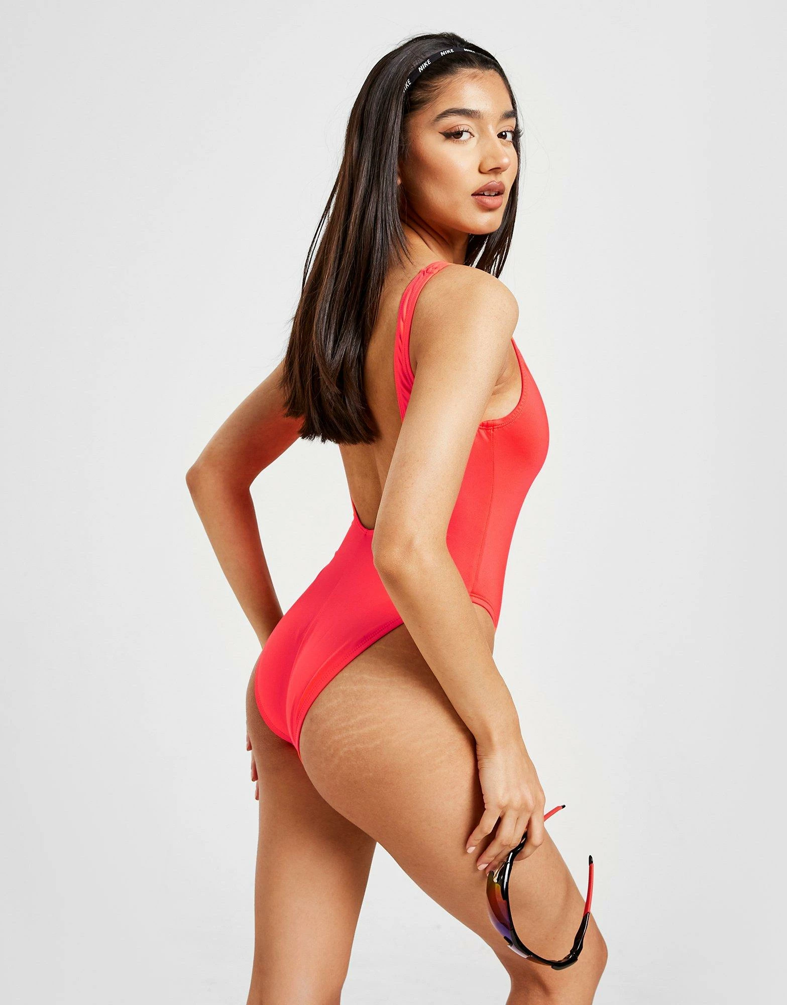 Step out in the Swoosh this Summer with this women’s Sneakerkini U-Back Swimsuit from Nike. Landing in a red colourway, this slim-fit swimsuit is cut from smooth, lightweight poly for essential comfort. It features a deep V-neckline with lae-inspired destailing at the chest, and high-cut legs with a low back for breathable wear. Finished up with repeat branding on the ‘laces’ and Nike’s signature Swoosh at the side. Machine washable. Please note: Swimwear cannot be returned if the hygiene strip has been removed or is broken. | Our model is 5’7″ and wears a size small.