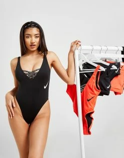 Cop some next-level heat for your poolside looks with this women’s Sneakerkini U-Back Swimsuit from Nike. Landing in a black colourway, this tight-fit swimsuit is made with ultra-smooth, fast-drying poly for essential comfort. It features a low-cut neckline with lace-up inspired detailing, with high legs and a U back design. With Nike branding to the ‘laces’ at the chest, it’s finished up with the iconic Swoosh logo to the side. Machine washable. Please note: Swimwear cannot be returned if the hygiene strip has been removed or is broken. | Our model is 5’7″ and wears a size small.