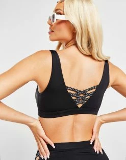 Upgrade your poolside picks with this women’s Sneakerkini Scoop Neck Bikini Top from Nike. Landing in a black colourway, this tight-fit bikini top is made with super-smooth recycled poly with added stretch for essential comfort. It has a reversible design with a scoop neck or a deep V-cut style with crossover details for a secure feel. Finished up with signature Nike branding throughout. Machine washable. | Our model is 5’7″ and wears a size small.