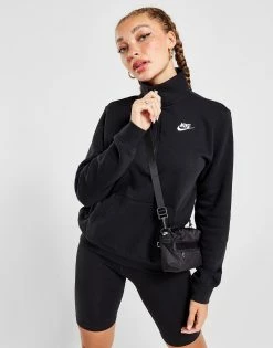 Zip up and hit the streets in this women’s Sportswear Club Fleece 1/4 Zip Sweatshirt from Nike. In a classic Black colourway, this cosy layer is made from signature Club Fleece fabric for all-day comfort. It features a quarter zip fastening and mock neck for added coverage, as well as ribbed trims to taper the fit and lock in your warmth. With a central kangaroo pocket for your essentials, this top is finished off with a White Nike Futura badge embroidered to the chest. Machine washable. | Our model is 5’6.5″ and wears a size small.