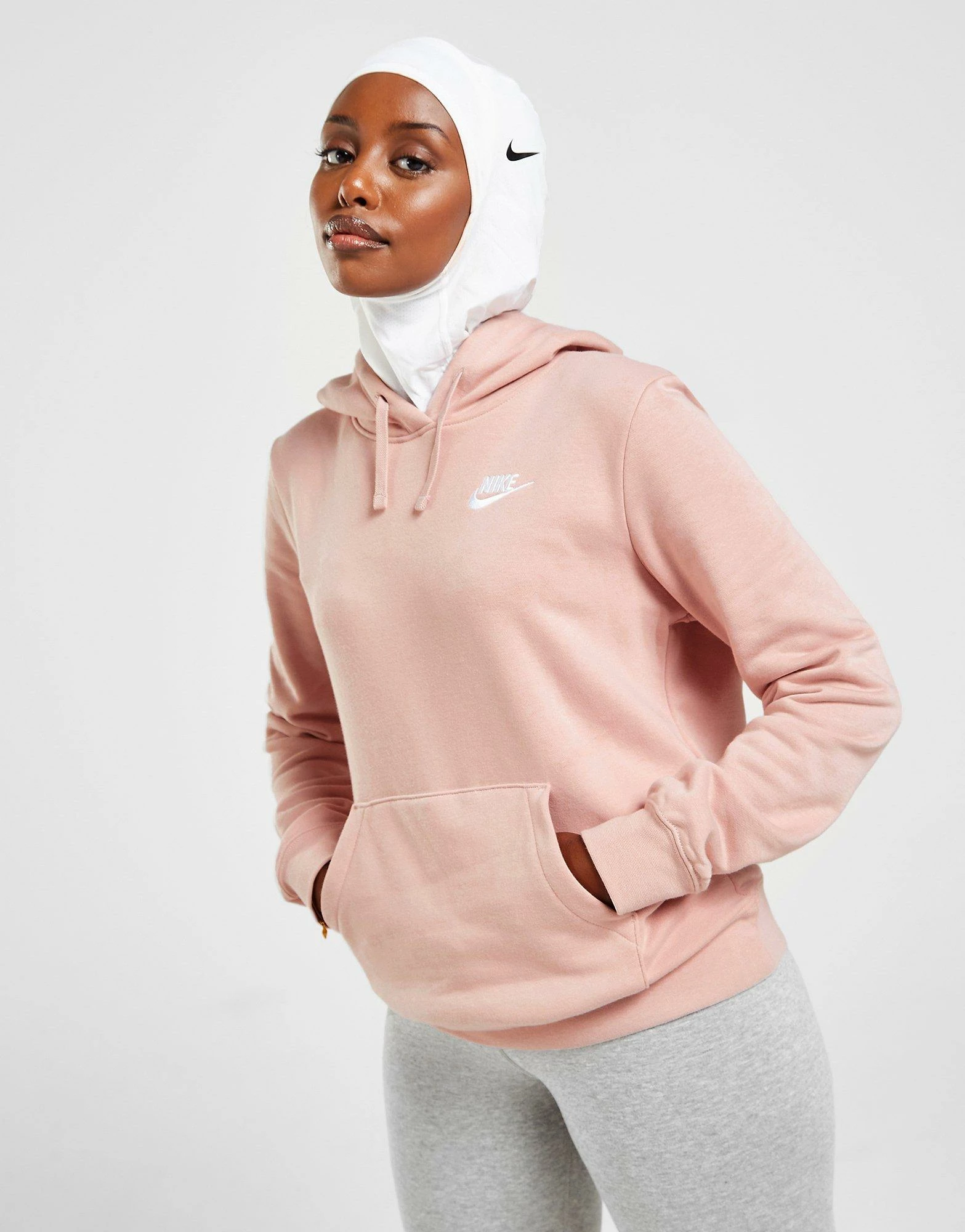 Layer up in this women’s Sportswear Club Fleece Overhead Hoodie from Nike. Coming in a Pink Oxford colourway, this standard-fit hoodie is made with soft brushed fleece for essential comfort. It features long sleeves and an adjustable hood for cosy coverage, and stretchy ribbed trims to secure the shape. With a kangaroo pouch up front, it’s finished up with signature Nike branding at the chest. Machine washable. | Our model is 5’6″ and wears a size small.
