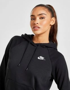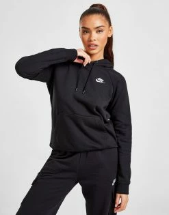 Opfrisk stilen med denne dame Essential Overhead Hoodie fra Nike Sportswear. Kommer i sort og er produceret i et blødt fleece. Har kængurulomme og hætte. Afsluttet med ikonisk Futura logo broderet på brystet i hvid. Tåler maskinvask.