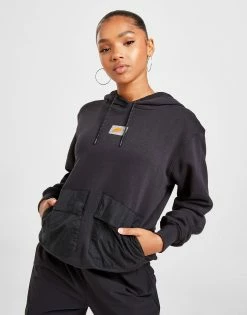 Prep for an outdoor adventure with this women’s Sportswear Outdoor Overhead Hoodie from Nike. In a Black colourway, this pullover hoodie is cut from soft, fleecey fabric with durable nylon overlays. It features an adjustable hood for custom coverage, with ribbed trims to lock in the fit and woven pockets with snap-button closures for secure storage. It comes in a baggy, oversized fit for a relaxed wear and is finished up with signature Nike branding to the chest. Machine washable | Our model is 5’7″ and wears a size small.
