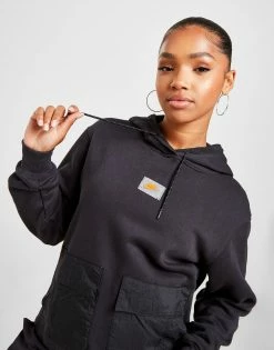 Prep for an outdoor adventure with this women’s Sportswear Outdoor Overhead Hoodie from Nike. In a Black colourway, this pullover hoodie is cut from soft, fleecey fabric with durable nylon overlays. It features an adjustable hood for custom coverage, with ribbed trims to lock in the fit and woven pockets with snap-button closures for secure storage. It comes in a baggy, oversized fit for a relaxed wear and is finished up with signature Nike branding to the chest. Machine washable | Our model is 5’7″ and wears a size small.