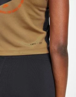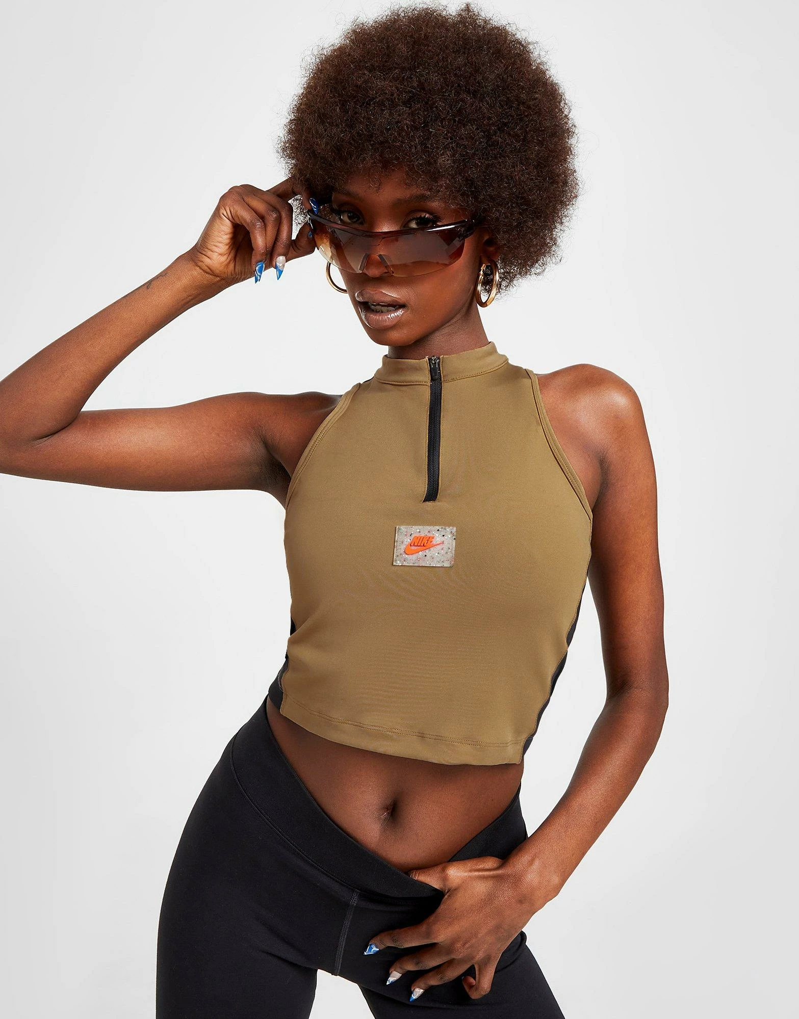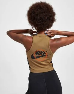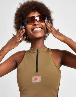 Update your essential styles with this women’s Outdoor 1/4 Zip Tank Top from Nike. Landing in a Dark Driftwood colourway, this tight-fit top is made with smooth, stretchy poly fabric for lasting comfort. Crafted with sweat-wicking Dri-FIT tech, it features a quarter zip closure with a slightly raised collar for a custom look. It has a sleeveless design and a cropped hem, and is finished up with Nike branding at the back and chest. Machine washable. | Our model is 5’7.5″ and wears a size medium.
