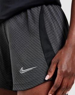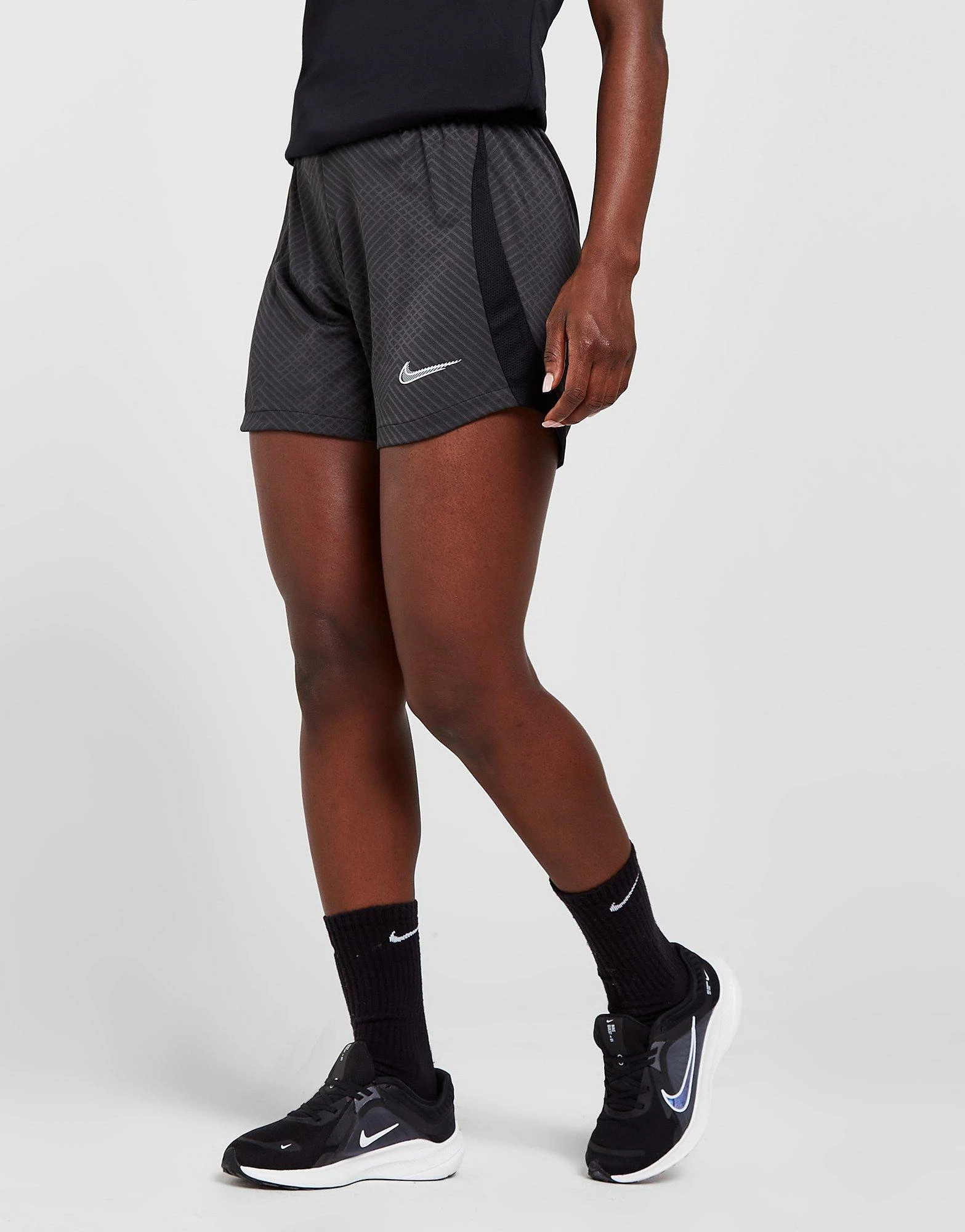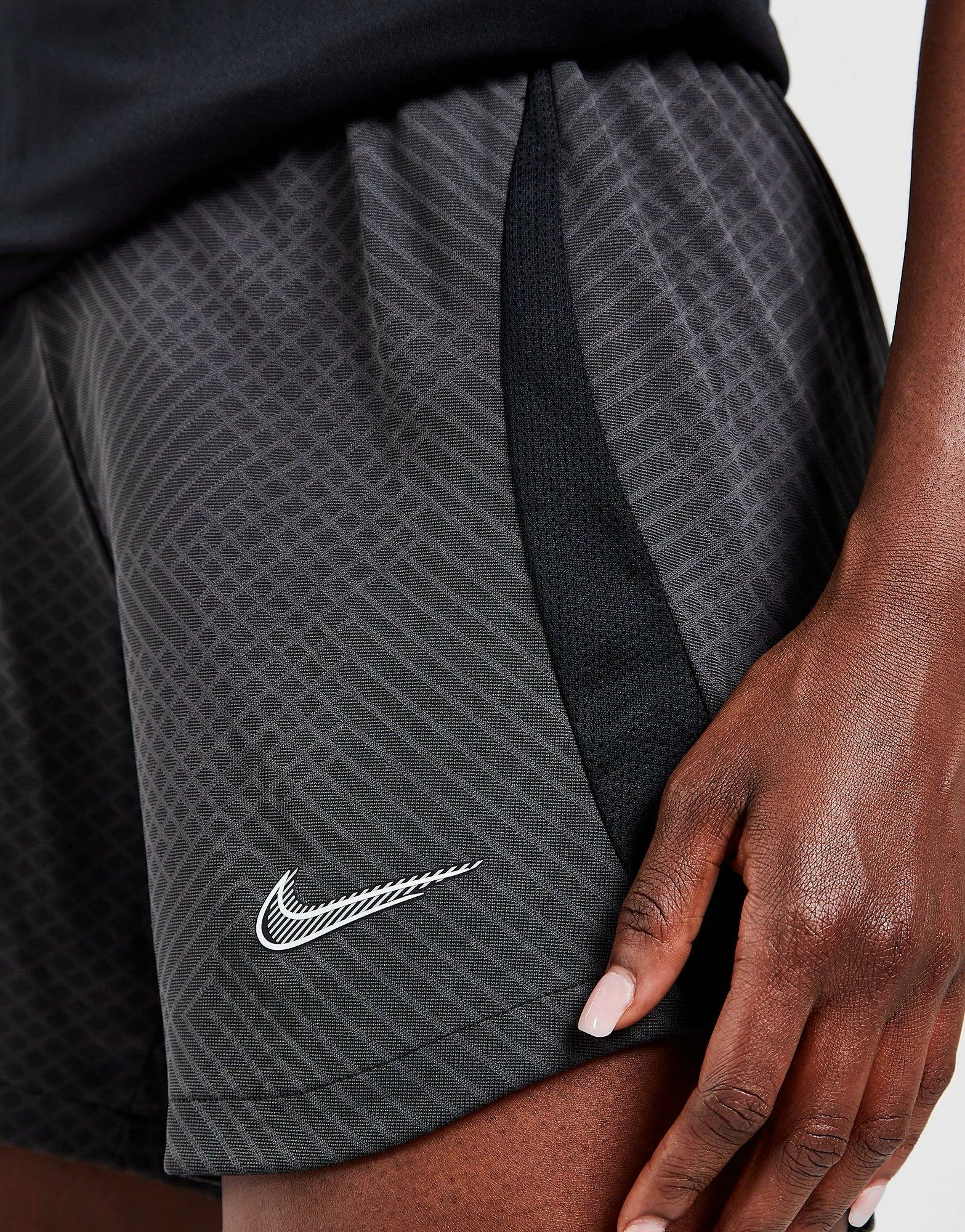 Focus on your training with these women’s Strike Shorts from Nike. In a Black colourway, these standard fit shorts are cut from light, breathable polyester for cool comfort. They feature an elasticated waistband for a relaxed fit, with built-in Dri-FIT sweat-wicking tech to keep you dry and mesh side panels to help you stay cool. Finished up with signature Swoosh branding to the leg. Machine washable | Our model is 5’6″ and wears a size small.