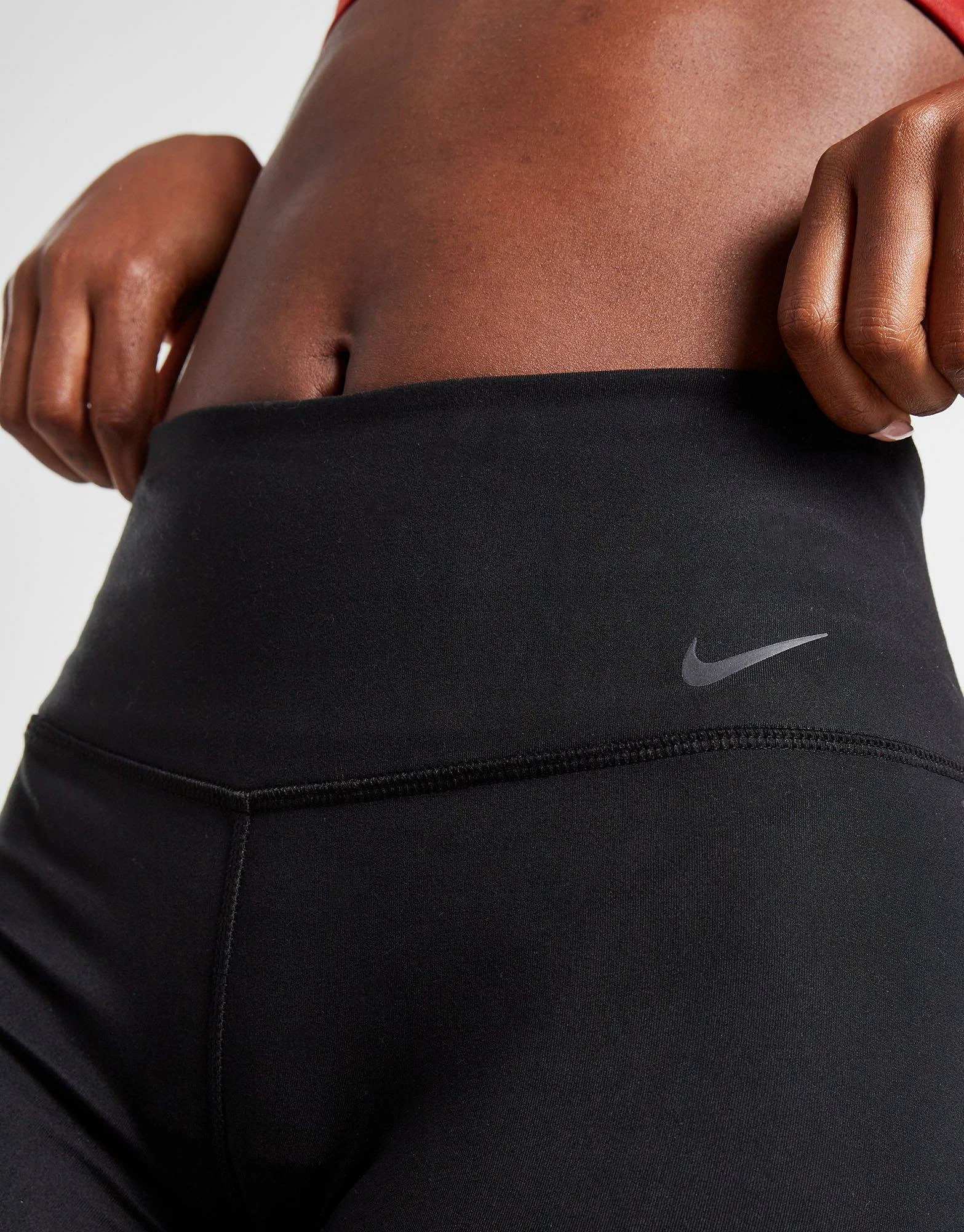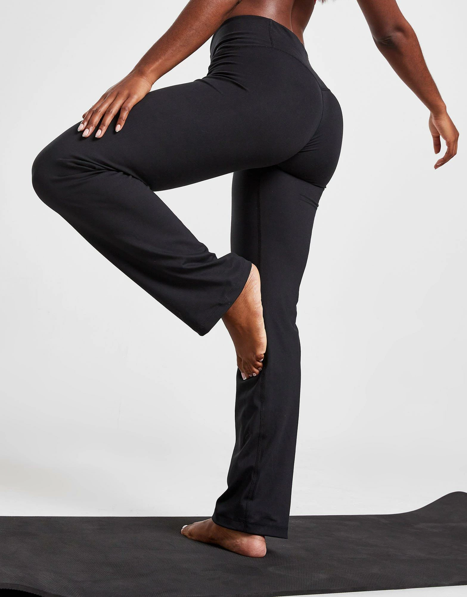 Made for flexible movement as you train, check out these women’s Studio Flared Training Pants from Nike. In a Black colorway, these pants are made from super-stretchy, poly-blended fabric for premium comfort as you workout. They feature Nike Dri-FIT tech that wicks away sweat to keep you dry and in the zone while the mid-rise, elasticated waist offers a relaxed fit with additional support around the core. With a flared cut for a loose fit, these pants are finished up with Nike Swoosh to the waist. Machine washable | Our model is 5’7″ and wears a size small.