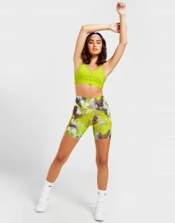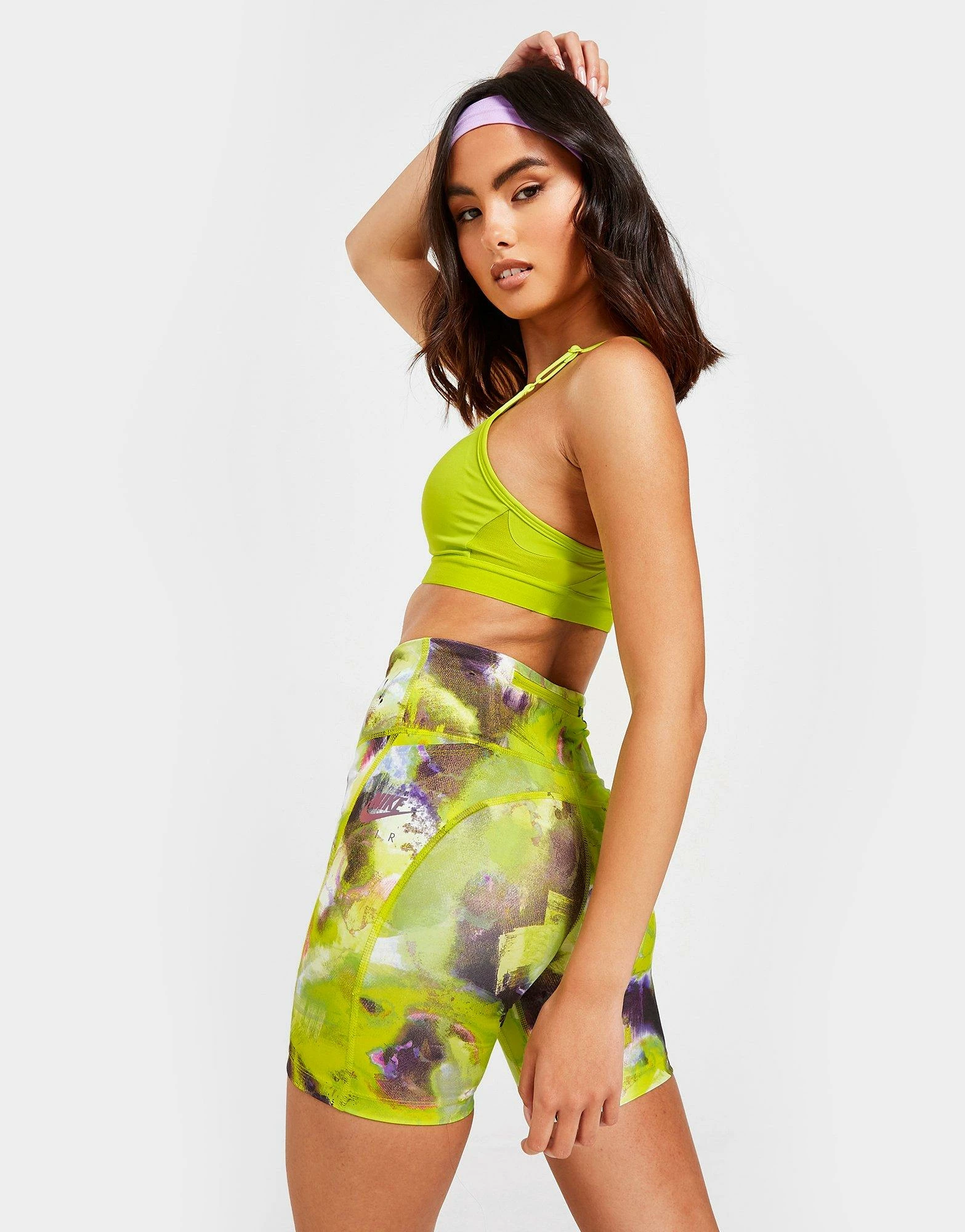 Smash your goals in these women’s Training Air All Over Print 7″ Shorts from Nike. Landing in an Atomic Green colourway with an all-over graphic print, these tight-fit shorts are made with a super-smooth, lightweight poly cut from at least 50% recycled materials. With extra stretch added for essential comfort, they’re crafted with Dri-FIT tech to wick away sweat as you move. They feature a high-rise elasticated waistband for a secure fit, with a drop-in pocket at the hip and a zippered back pocket to store your stuff. Signed off with classic Nike Air branding at the thigh. Machine washable. | Our model is 5’6″ and wears a size small.
