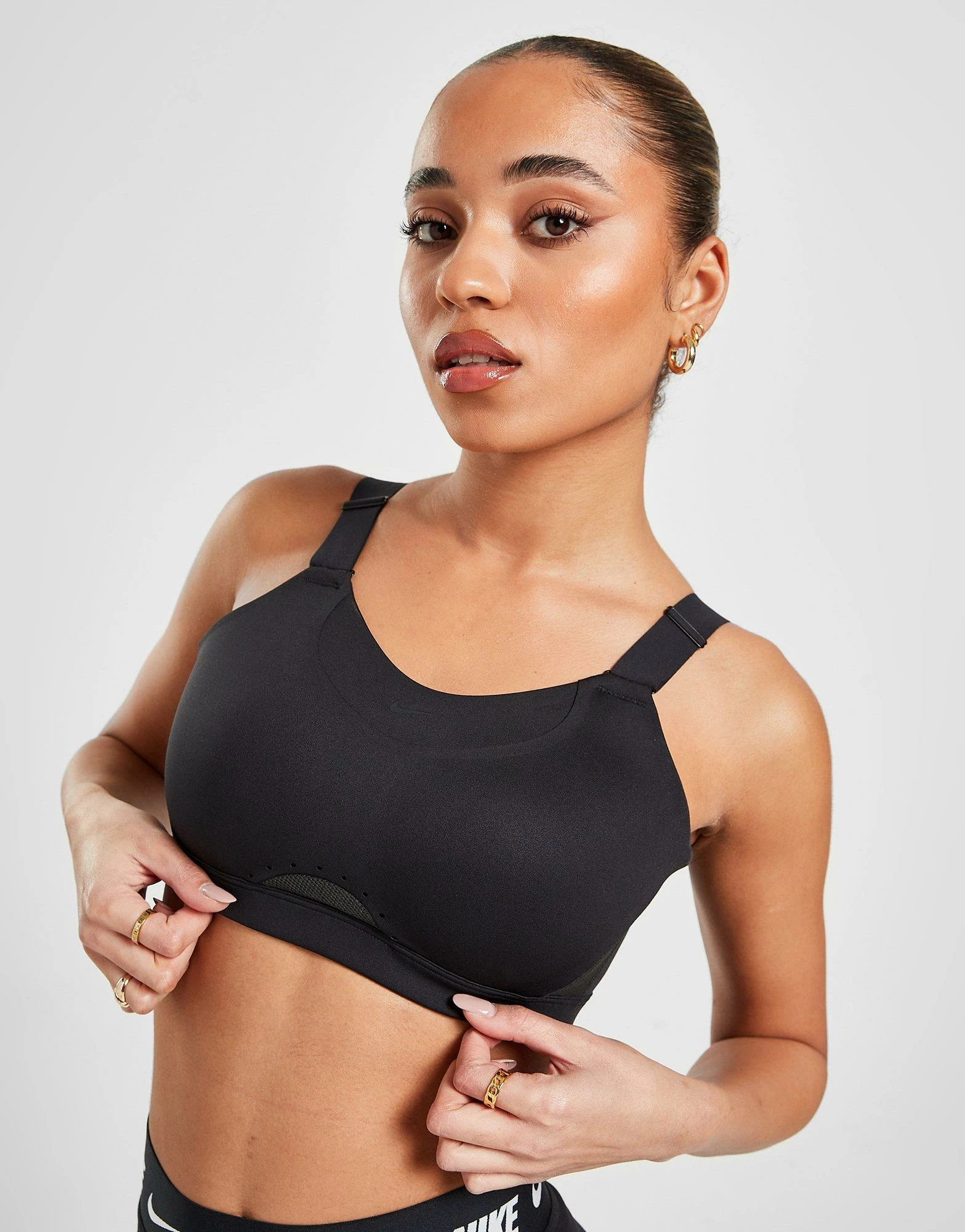 For essential support as you train, check out this women’s Training Alpha Bra from Nike. In a Black colourway, this sports bra is made from light, stretchy poly fabric for everyday comfort, including at least 50% recycled poly fibres. It comes equipped with Nike Dri-FIT sweat-wicking tech to keep you dry and fresh during your workout, with adjustable straps for a custom fit and foam padding for added support. Finished up with tonal Swoosh branding to the chest. Machine washable | Our model is 5’8″ and wears a size small.