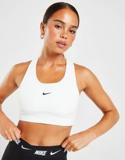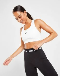 Elevate your workout essentials with this women’s Training Dri-FIT Swoosh Sports Bra from Nike. Comin’ in a White colourway, this tight-fit sports bra is made with smooth, lightweight poly fabric for lasting wear. Delivering mid-level support to your workouts, it’s built with sweat-wicking Dri-FIT tech, and features thick straps with a sporty racerback cut for unrestricted movement. It has a removable one-piece pad to resist shifting and folding, and the pad pocket opens from the top to store a phone. Finished up with signature Swoosh branding at the chest. Machine washable. | Our model is 5’6″ and wears a size small.