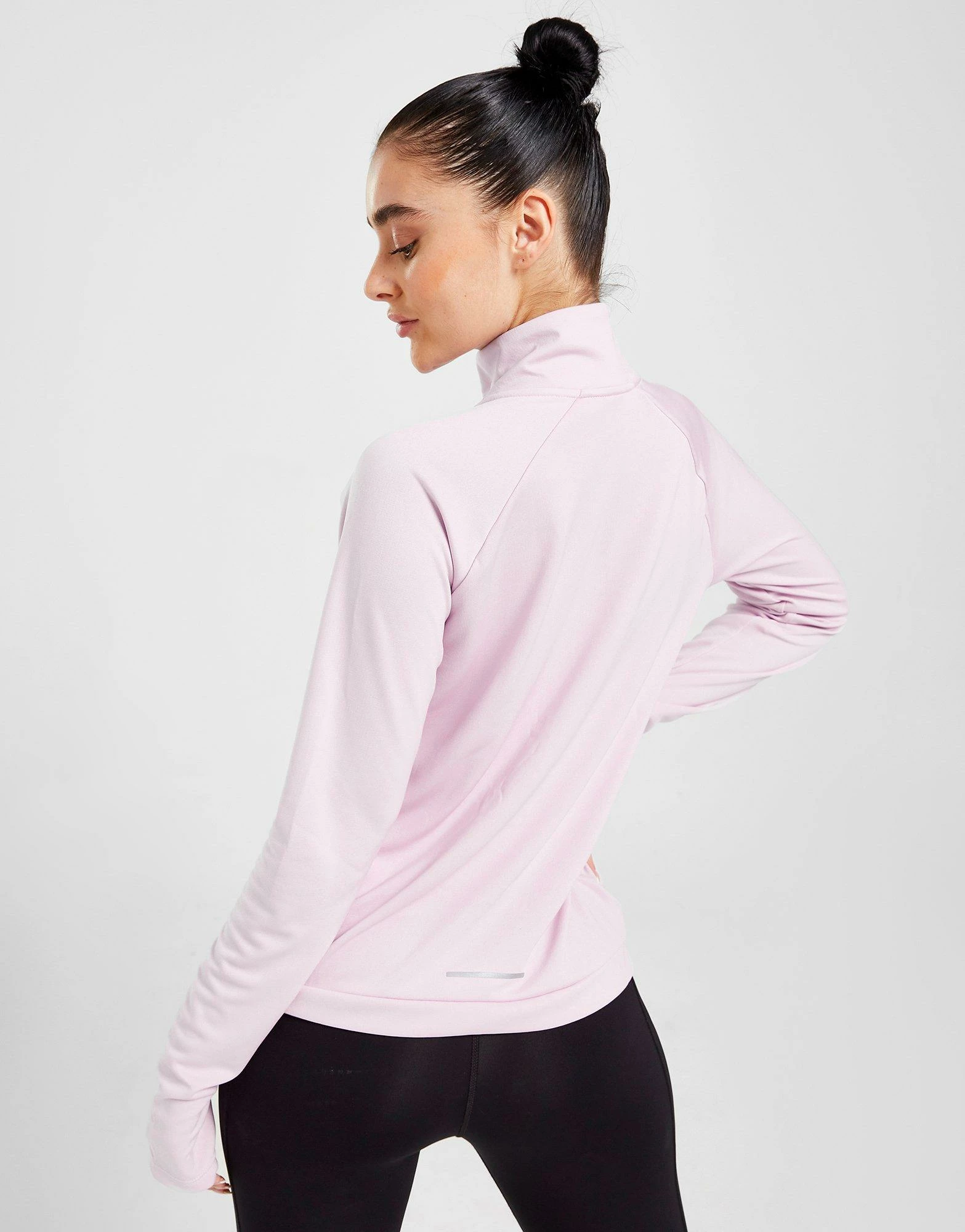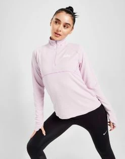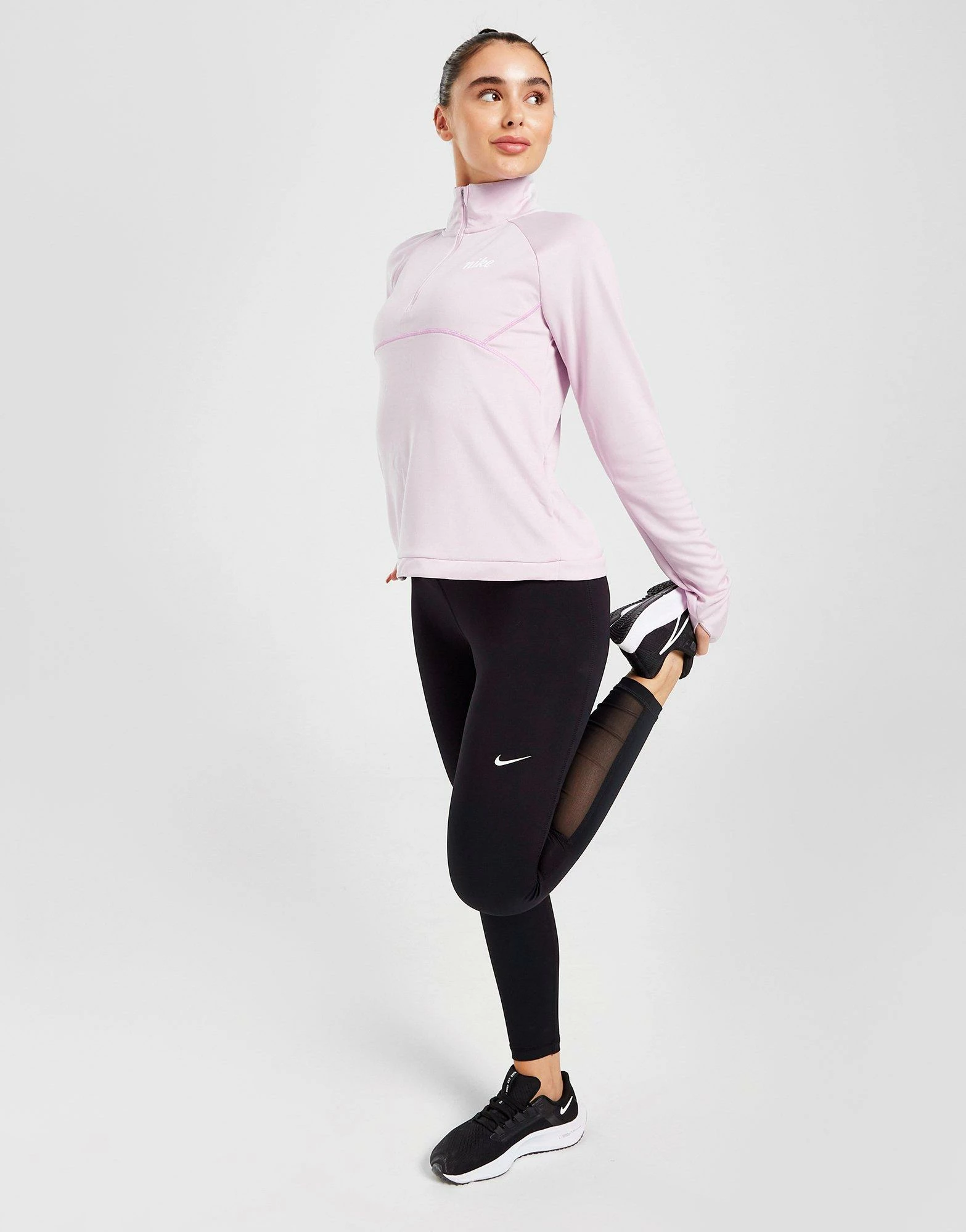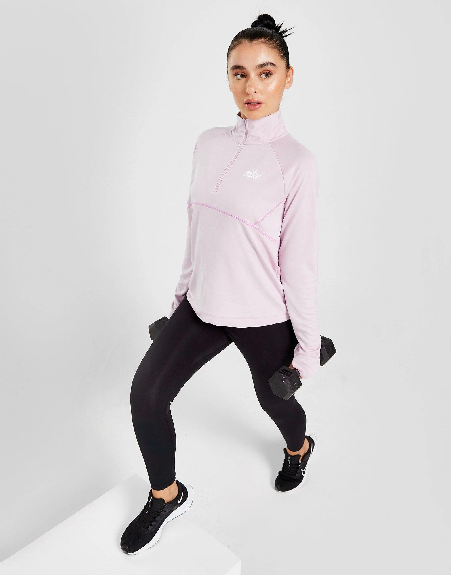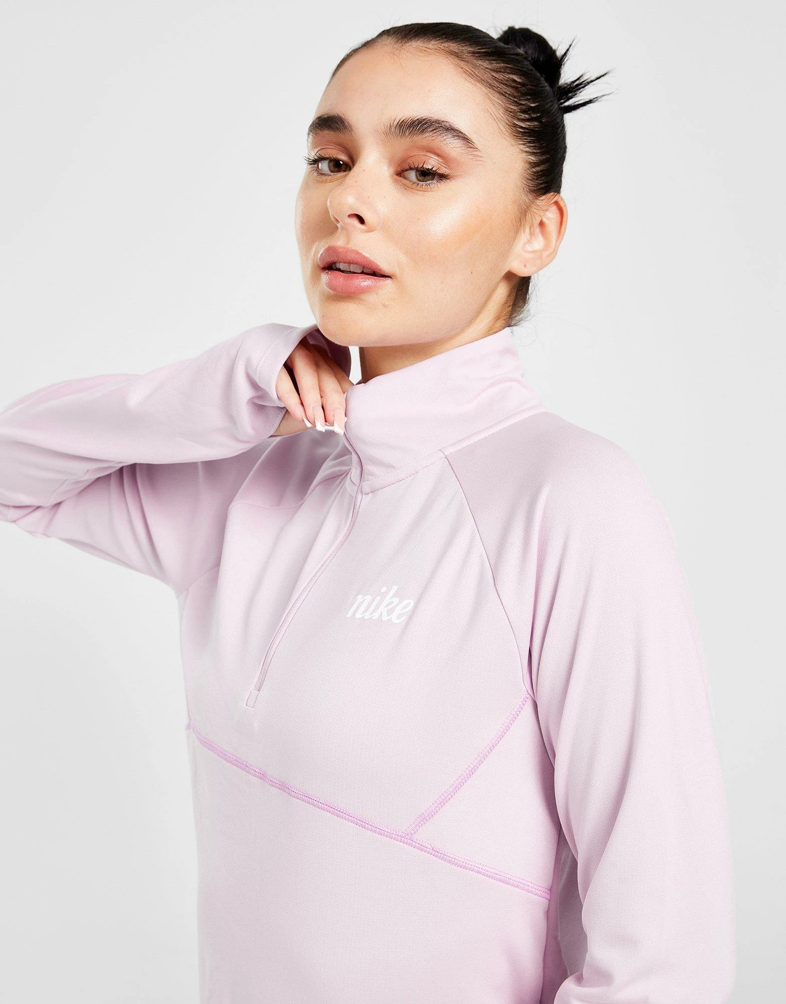 Level up your fitness essentials with this women’s Training Icon Clash 1/4 Zip Top from Nike. Landing in a Light Thistle colourway, this workout top is made with super-smooth, lightweight poly fabric for supreme comfort. Crafted with sweat-wicking Dri-FIT technology to keep you dry, it features a quarter zip closure with a stand-up collar to adjust your airflow. With long, raglan-cut sleeves with thumb-loops for secure coverage, it’s finished up with classic Nike branding at the chest. Machine washable. | Our model is 5’6″ and wears a size small.