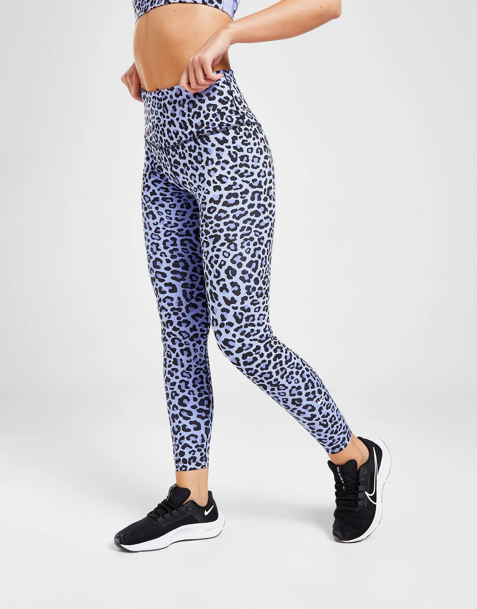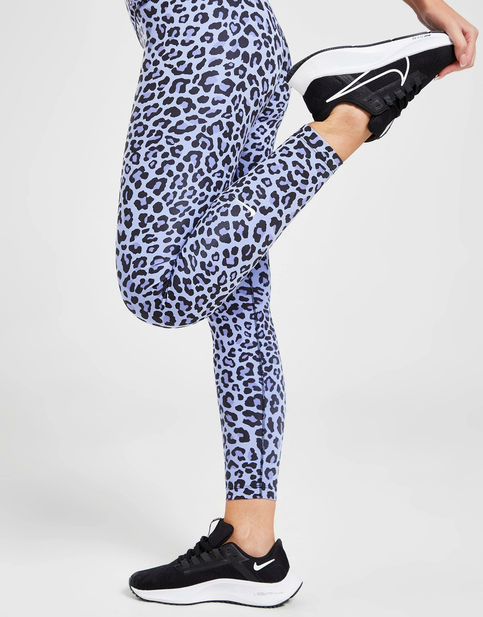 Level up at the gym sesh with these women’s Training Leopard All Over Print Tights from Nike. Landing in a Light Thistle colourway with an all-over animal print, these tight-fit leggings are made with smooth, durable poly fabric with added stretch for supreme comfort. Crafted with sweat-wicking Dri-FIT technology to keep you dry, they feature a mid-rise waistband contoured with a V shape at the reverse for a sleek silhouette. With two hidden pockets in the waistband to store your essentials, these tights are finished up with Nike’s iconic Swoosh at the thigh. Machine washable. | Our model is 5’6″ and wears a size small.